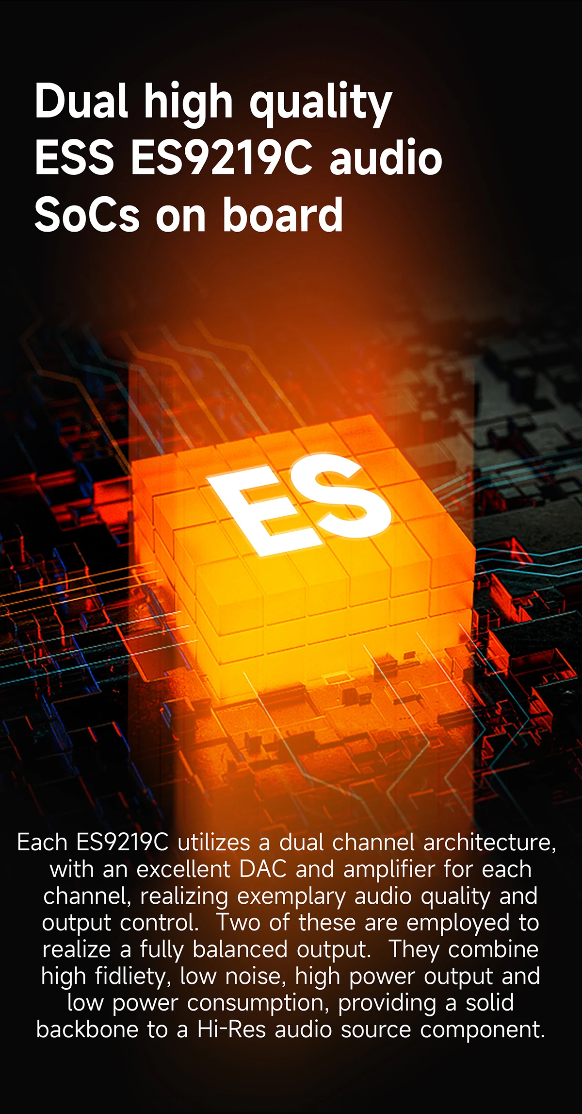 HiBy R3 II viene equipado con chips duales ES9219C DAC. Estos dos chips DAC de 32 bits proporcionan una claridad excepcional y una decodificación de señal de audio nítida de alta resolución. Admite señales de audio PCM de 32 bits y DSD256 nativas. HiBy R3 II también admite el despliegue completo de MQA 16x para un verdadero rendimiento de estudio.