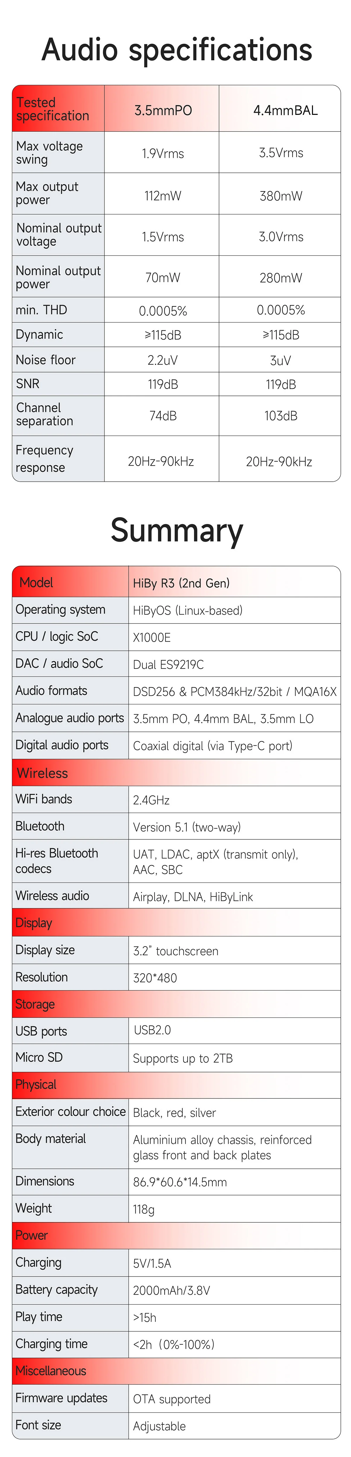 Comprar HiBy-reproductor de música R3 II / R3 Gen 2, con Bluetooth, WiFi, MP3, Audio HiFi, MSEB, MQA16X, DSD 256, Radio Web, USB tipo C, DAC, Walkman