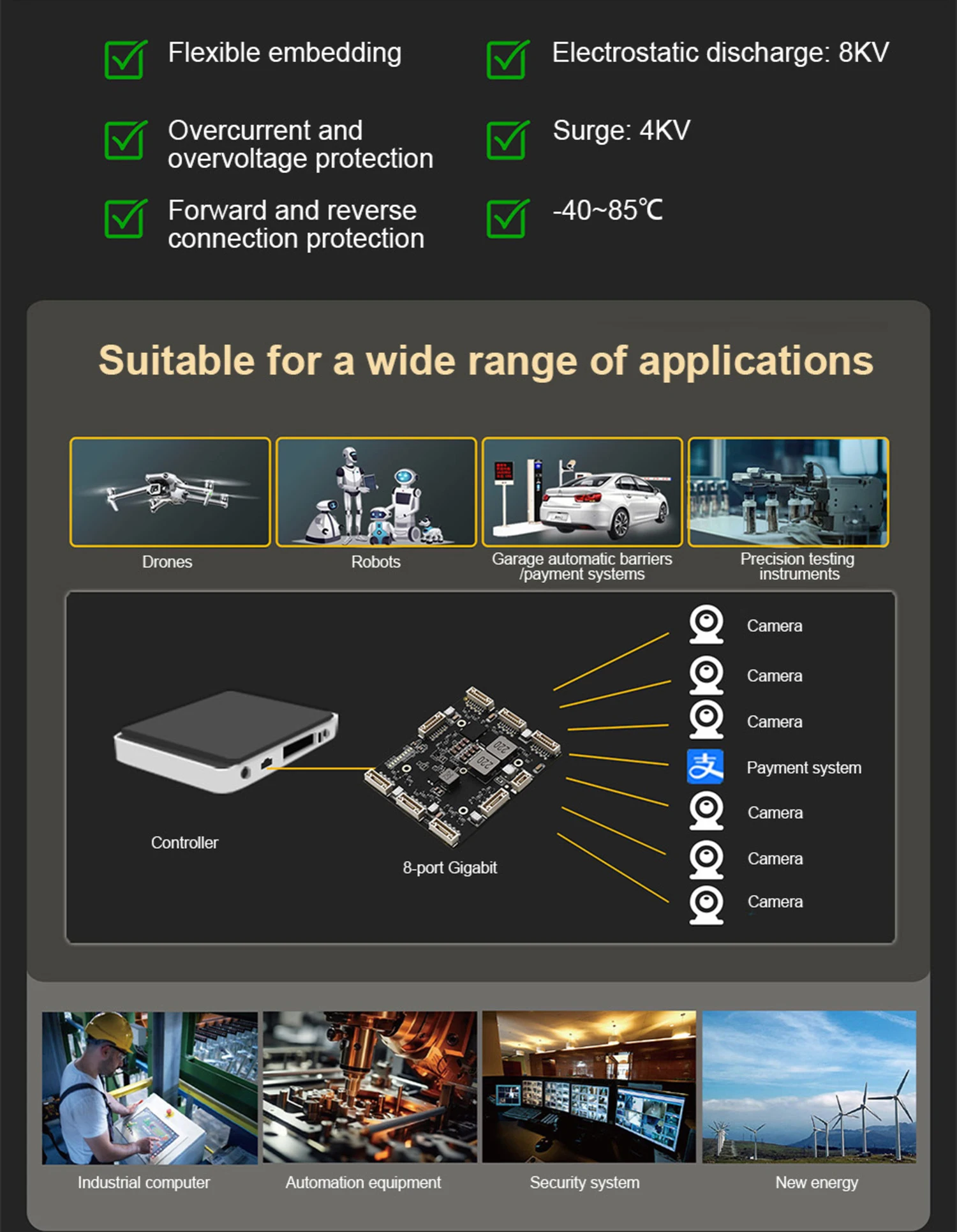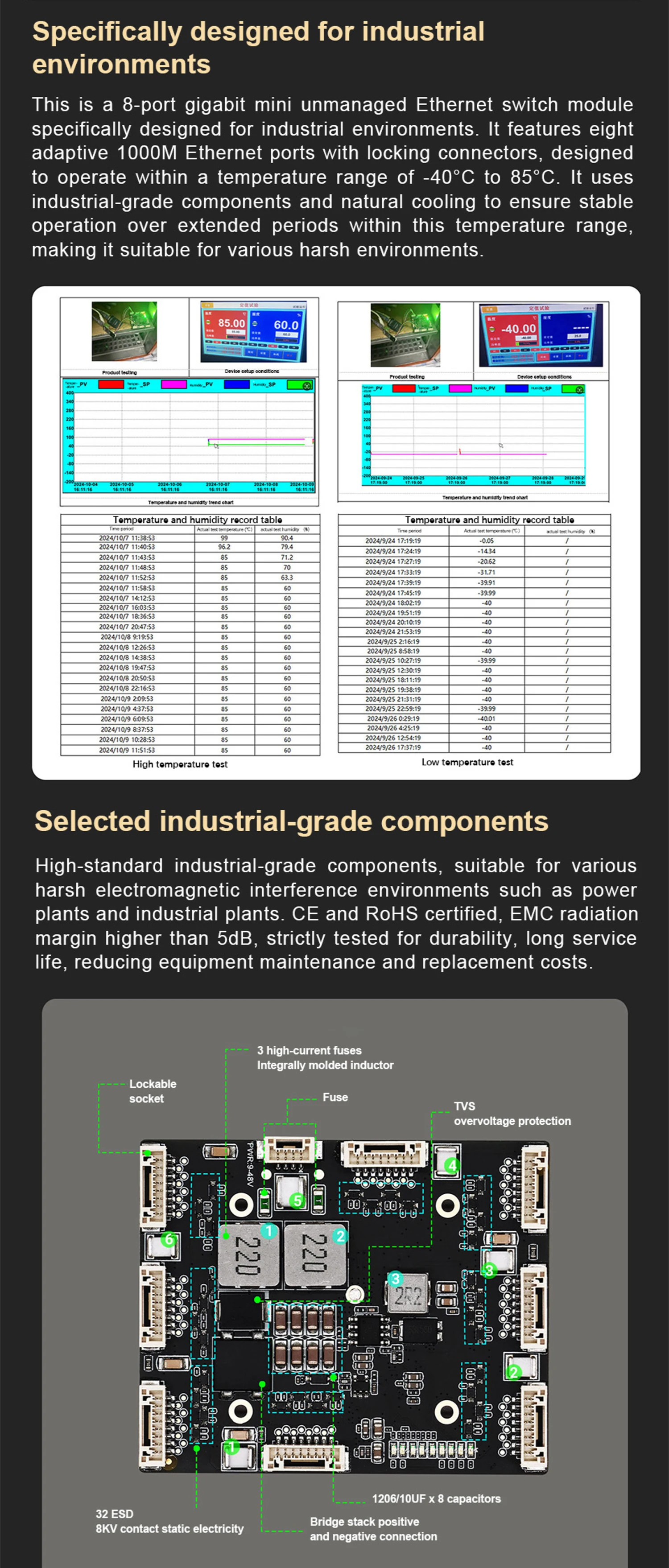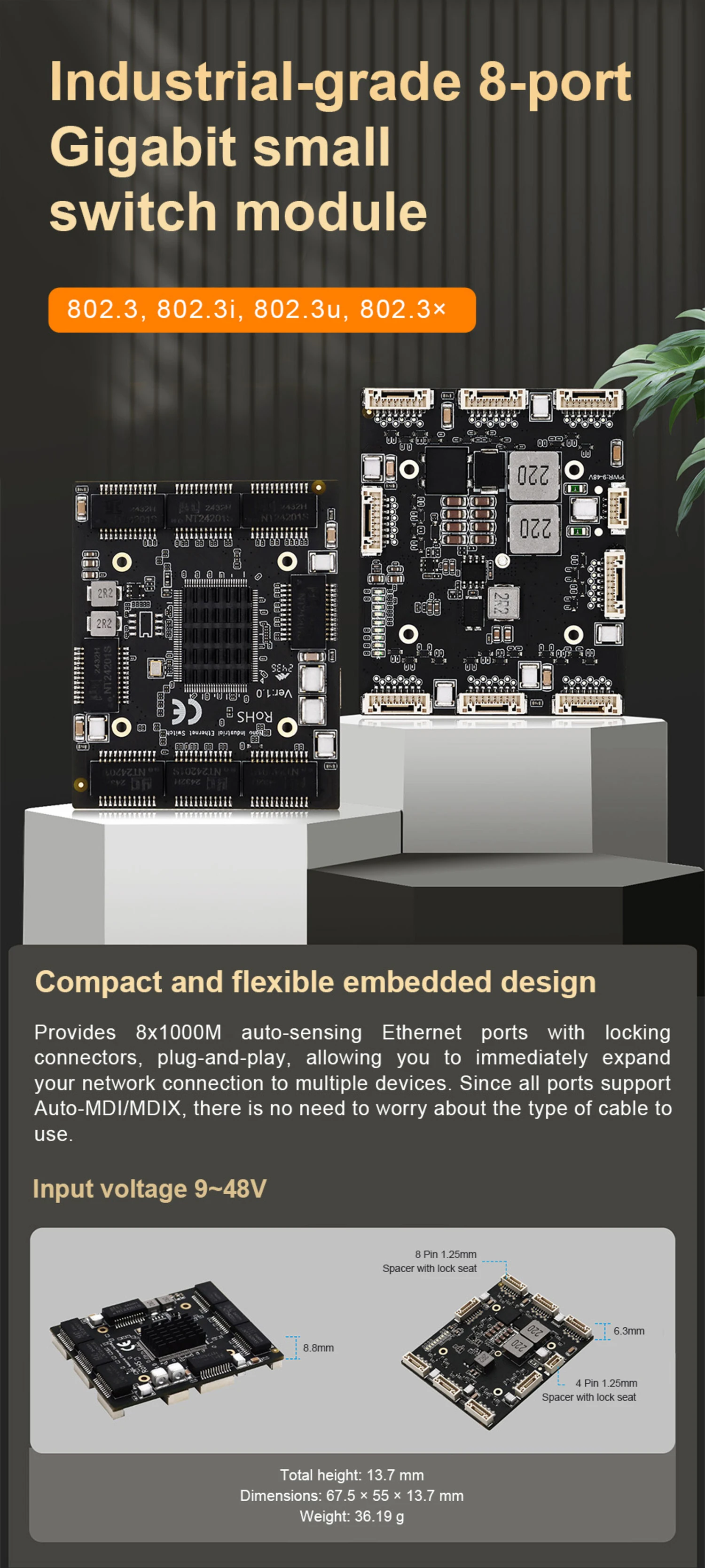 HICOMDATA-conmutador de minería intrínsecamente seguro, Gigabit, 8 puertos, módulo PCBA, robot inteligente, transmisión de vídeo, placa base PCBA