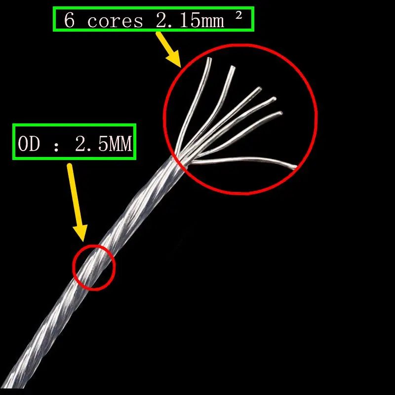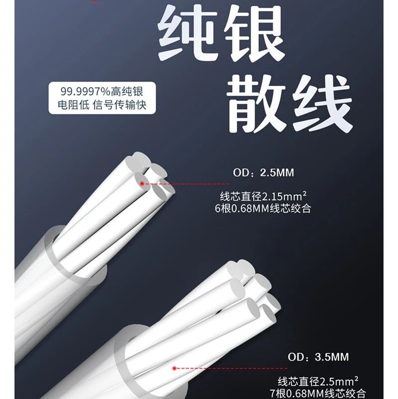 Comprar Hifi-cable de alimentación de Audio para auriculares, conector auxiliar de señal de coche, plata pura, 2,5mm ²/2,15mm ², 6 núcleos/7 núcleos