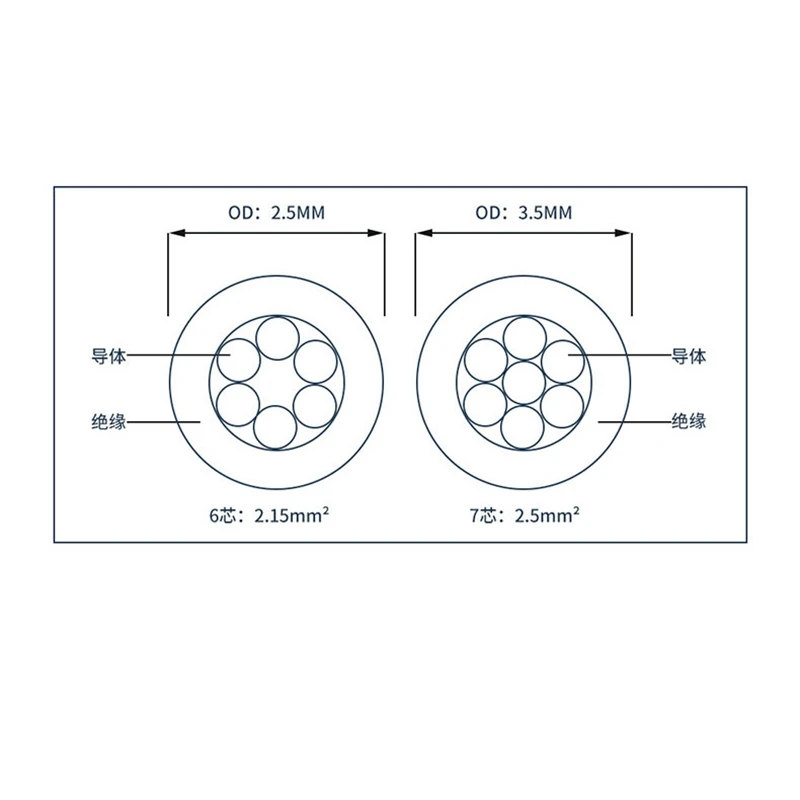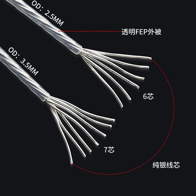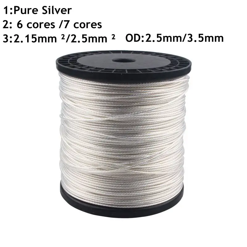 Hifi Pure Silver 2,5mm ²/2,15mm ² 6 núcleos/7 núcleos Cable de alimentación de audio Altavoz auriculares AUX cable de interconexión de señal de coche