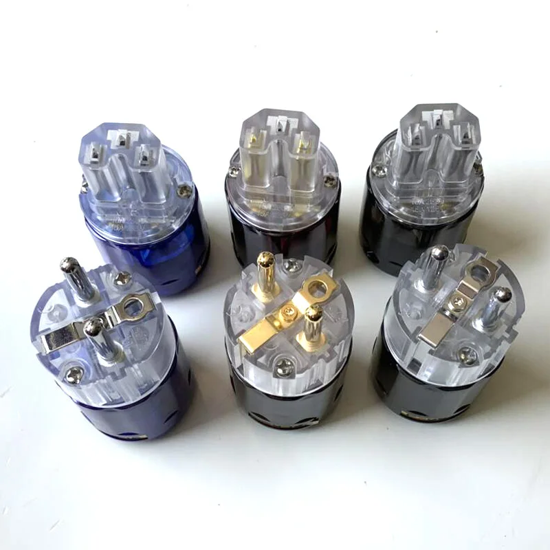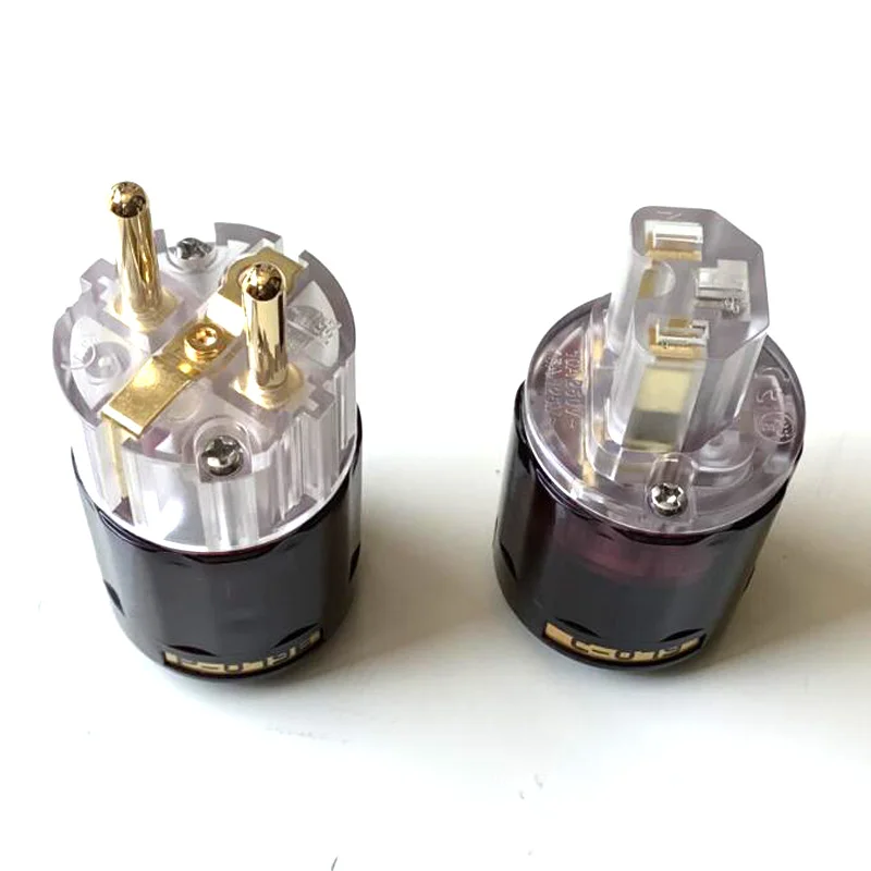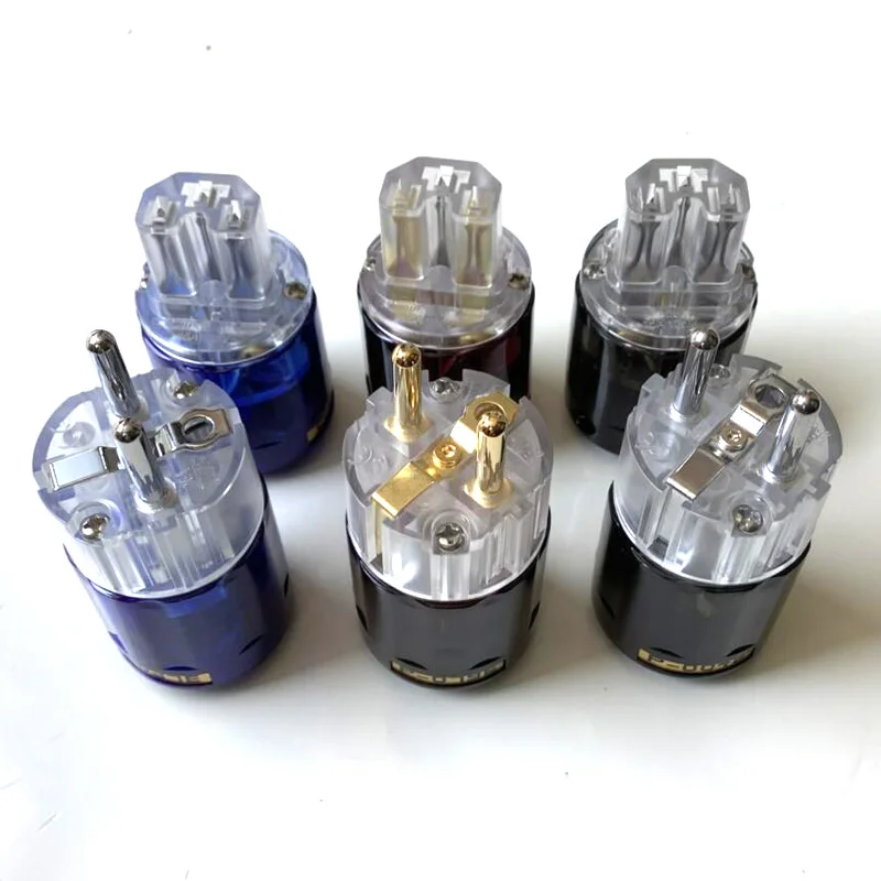 HIFI EU/Schuko enchufe de alimentación latón oro/rodio enchufe de alimentación transparente conector IEC P-004E P-037E P-079E C-004 C-037