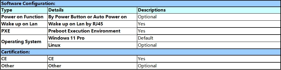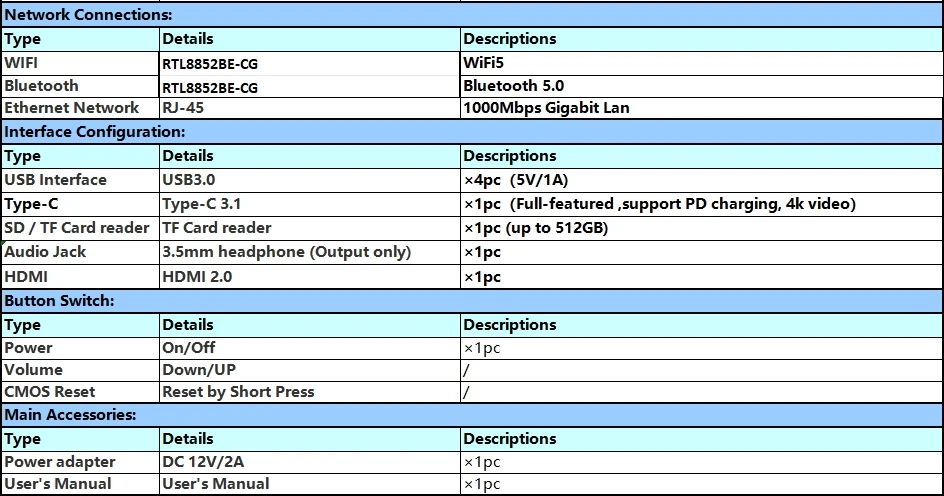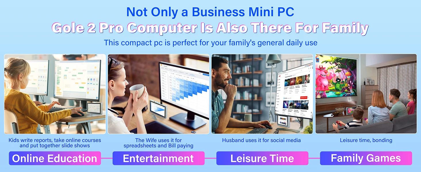 Esta computadora compacta no solo es una buena ayuda para suoficina de negociosuso, pero también para tuuso de la vida diaria.Por ejemplo,reuniones de negocio, viajes de negocios, viajes, oficina en casa,educación en línea, entretenimiento por vídeo, juegos,cine en casa, NAS, enrutadores de software,servidores de casao firewalls de red, vinculación de impresoras,monitoreo de seguridad, automatización industrial, señalización digital, POS, transmisión en vivo,regalos navideños.¡Más usos, esperando que se desarrolle!
