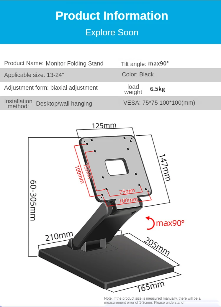 HILLPORT 13-24" Soporte de inclinación Soporte para TV LCD montado Monitor de pantalla táctil Soporte de escritorio Soporte de mesa para monitor plegable PC DZ11