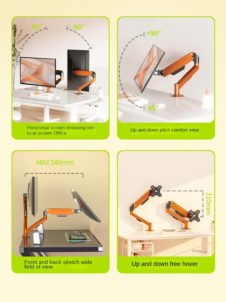 Muelle de Gas de escritorio M5, 17-30", soporte para Monitor LED LCD, carga de brazo articulado, soporte de puntal de movimiento completo de 2-9kg, soporte para Monitor, soporte para PC【Introducción del producto】puerto