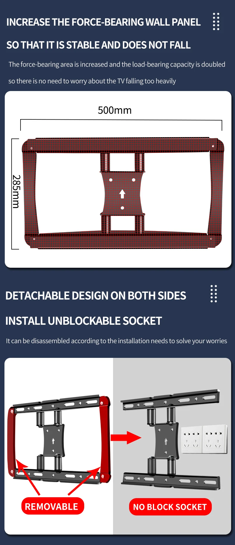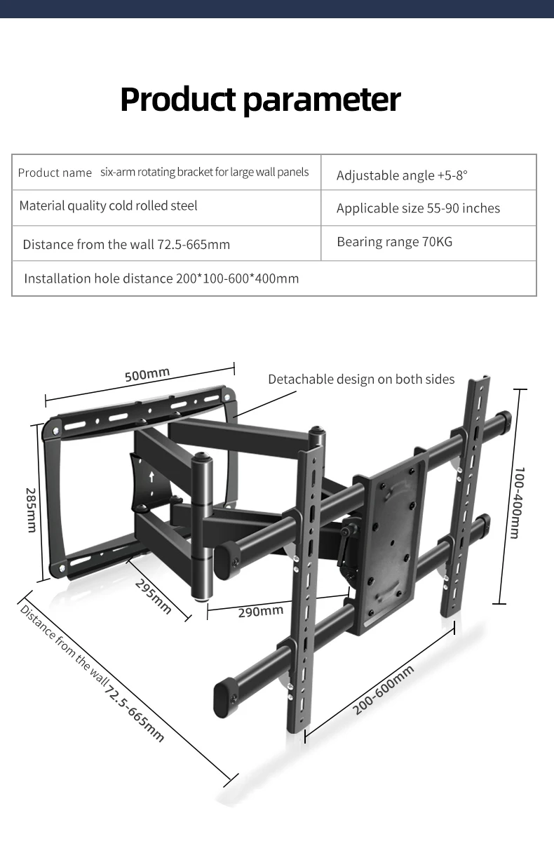 Comprar HILLPORT 55-100 pulgadas soporte de montaje en pared para TV de alta resistencia soporte de TV inclinable ultrafino Digital ajustable VESA 600*400MM DY777
