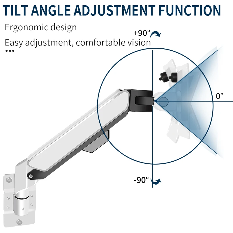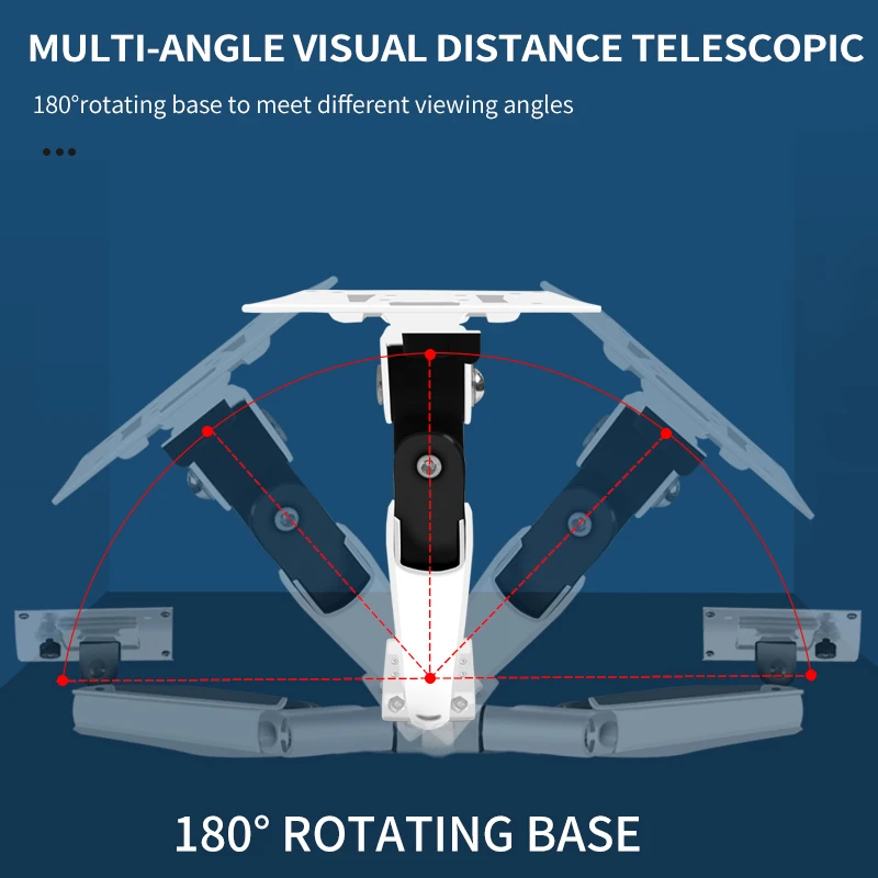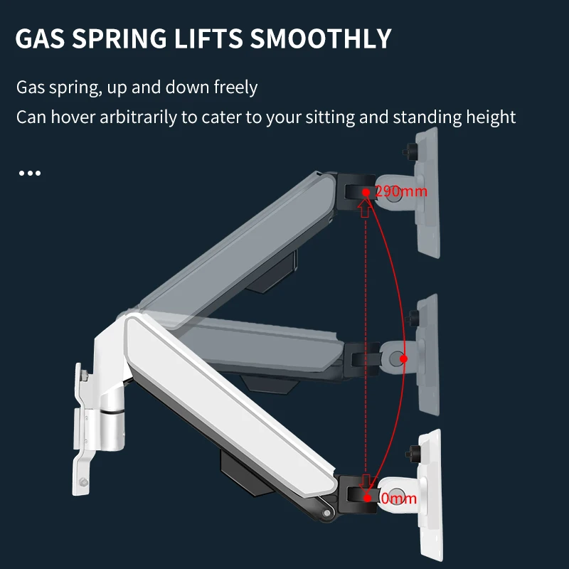 Características: resorte de gas de montaje en pared de pantalla multifuncional, adecuado para pantalla grande de 10-32 pulgadas, el brazo se puede girar 180 grados, la pantalla se puede girar 90 grados, la altura se puede ajustar libremente, diseño ergonómico, campo de visión cómodo, adecuado para entretenimiento, aprendizaje, oficina y otros lugares, fácil de instalar.