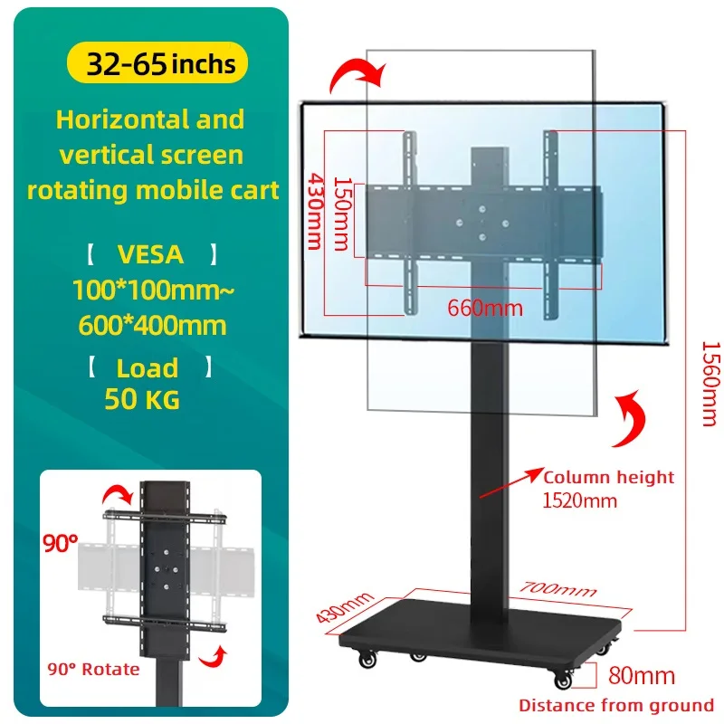 Comprar HILLPORT-carrito de TV de 26-55 ", 32-65", carrito de montaje rodante de elevación libre, Soporte de baja altura para Mesa de TV, Monitor LCD LED, pantalla de Plasma