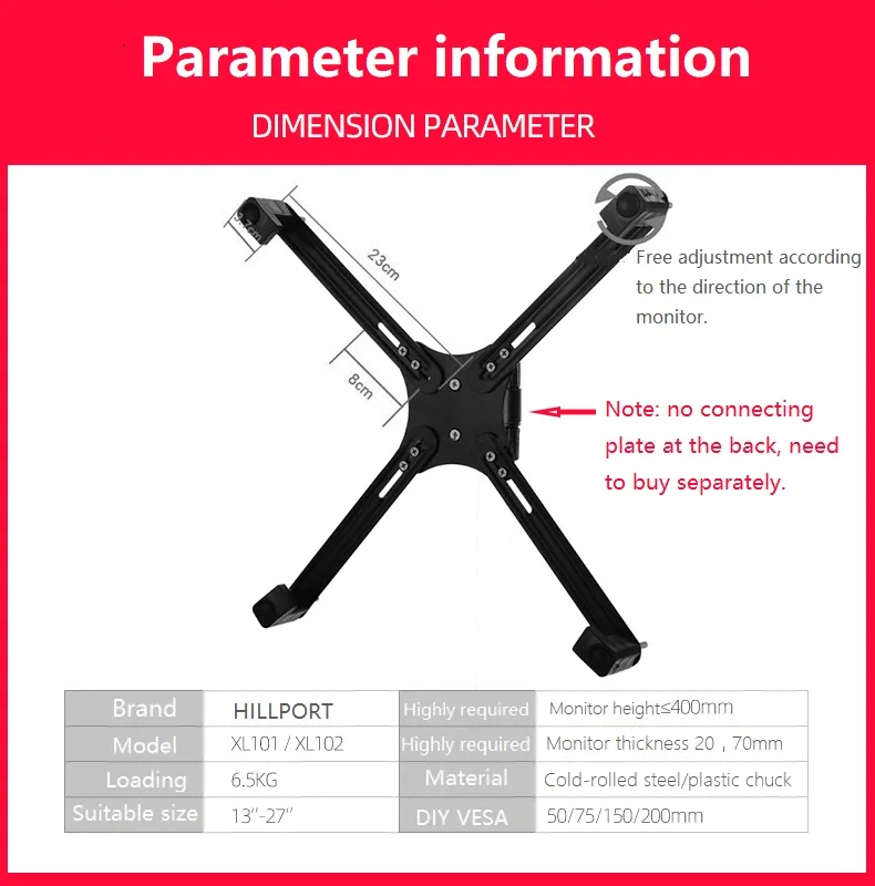 13-27 Inch No Mounting Vesa Hole Monitor Desk Stand Accessory.Can be freely combined, suitable for a variety of mounting brackets.