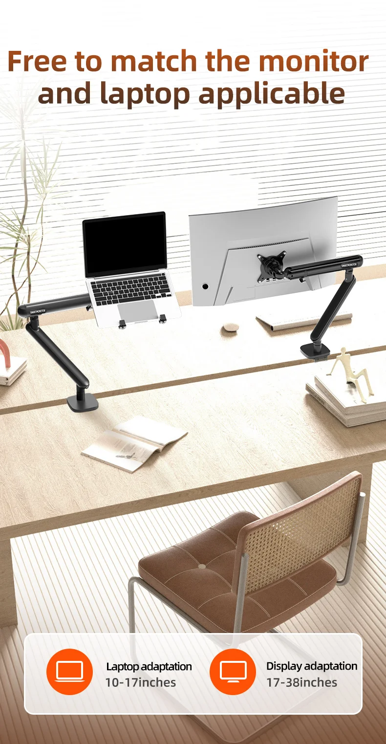 Resorte de Gas Altura ajustable 14-32 pulgadas Pantalla Soporte Monitor Brazo Movimiento completo Soporte de escritorio Soporte de computadora Carga 9kgs H3