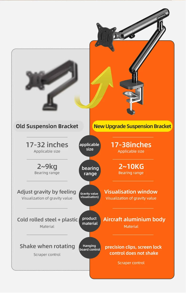 Comprar HILLPORT-resorte de Gas A8, soporte de montaje de Monitor LCD LED de escritorio de 17-38 pulgadas, brazo ergonómico, puntal de Gas, carga flexible de 2 ~ 10kg