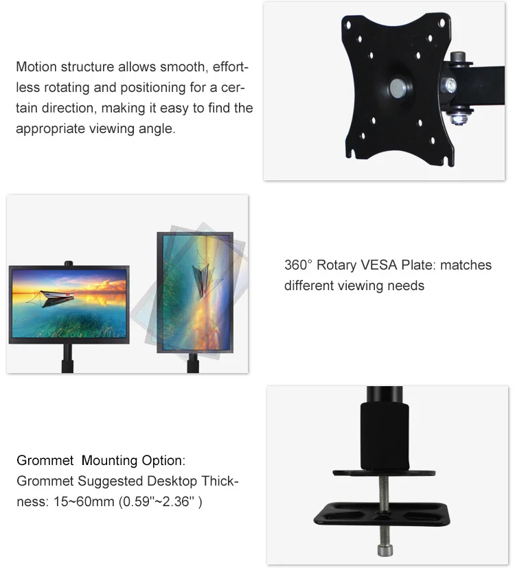 Comprar HILLPORT-Soporte de brazo para Monitor de 14-27 ", Soporte giratorio para TV, escritorio, PC, Mesa, Soporte para ordenador, XC05