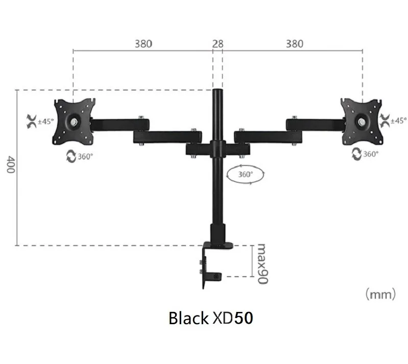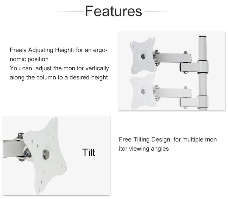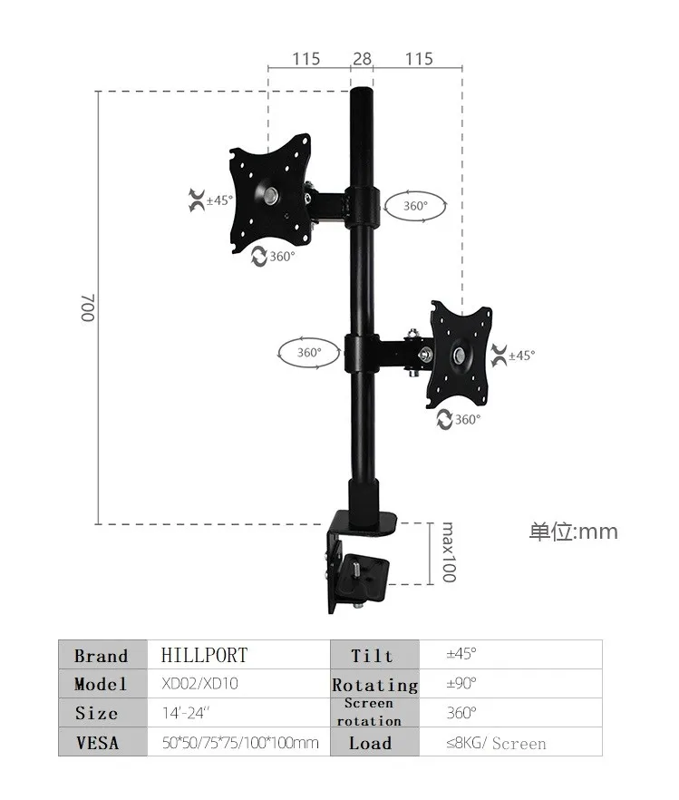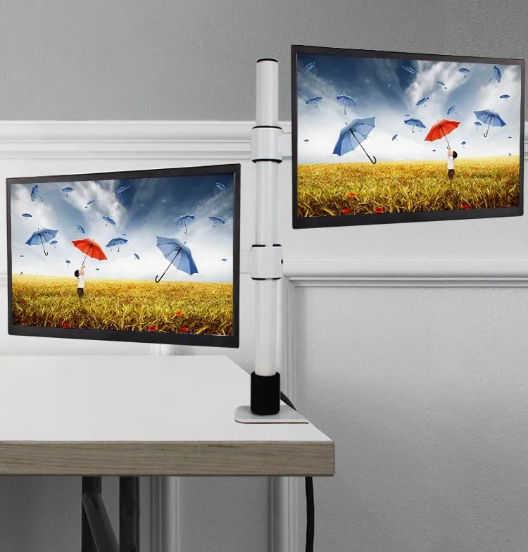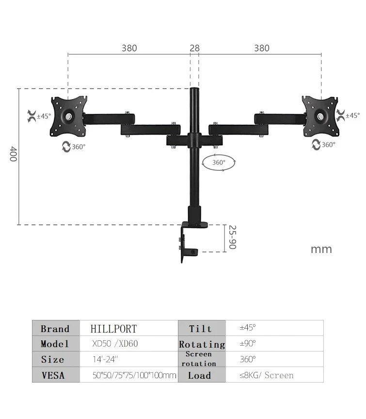 Comprar HILLPORT-Soporte elevador de escritorio para Monitor Dual de movimiento completo, abrazadera, ojal, Base de agujero, montaje de PC, brazo plegable, XD50, 10 "-27"