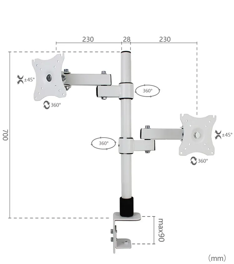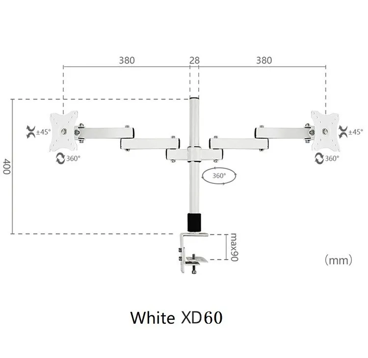 HILLPORT Full Motion Dual Monitor Soporte de escritorio 10 "-27" Abrazadera Grommet Hole Base PC Mount Soporte de brazo plegable XD60