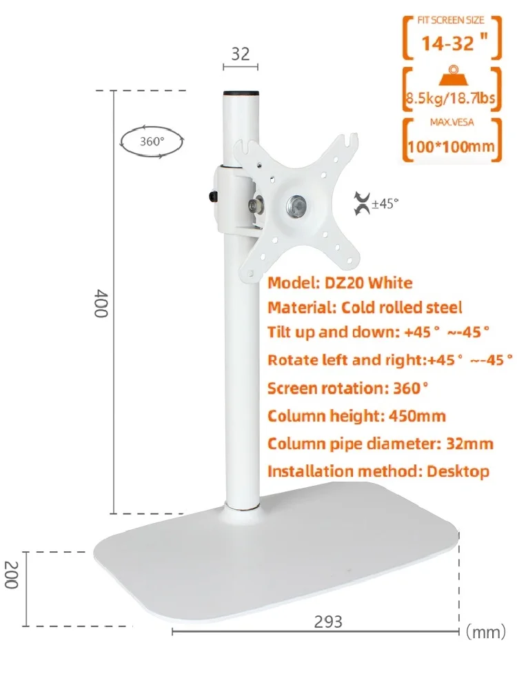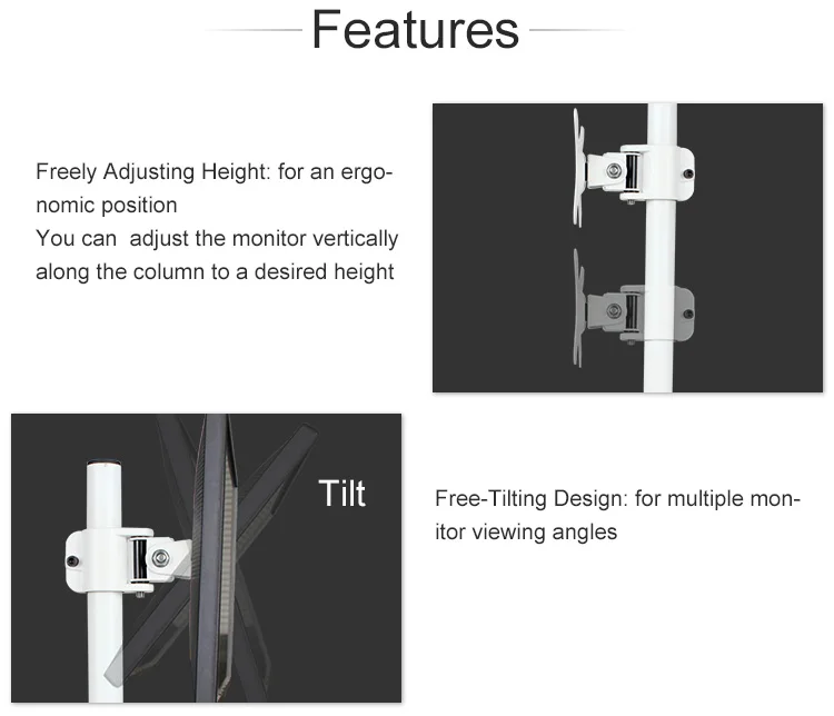 Comprar HILLPORT-Soporte de escritorio para Monitor, Base de Metal ajustable de altura de 14 a 32 pulgadas, brazo de montaje para Pc de pantalla única, color blanco, DZ20