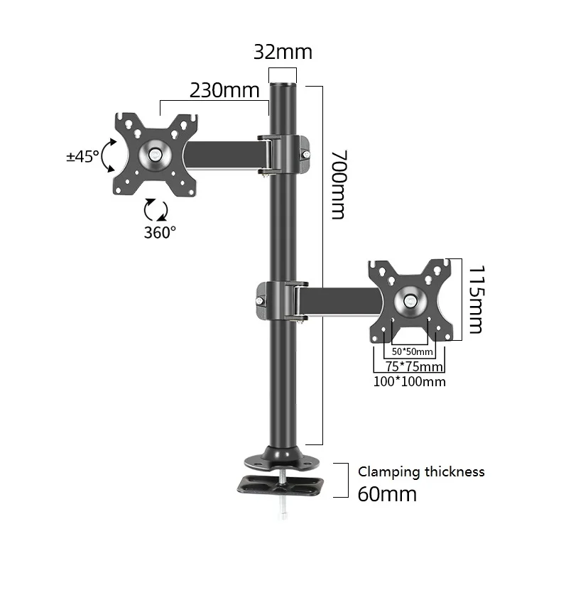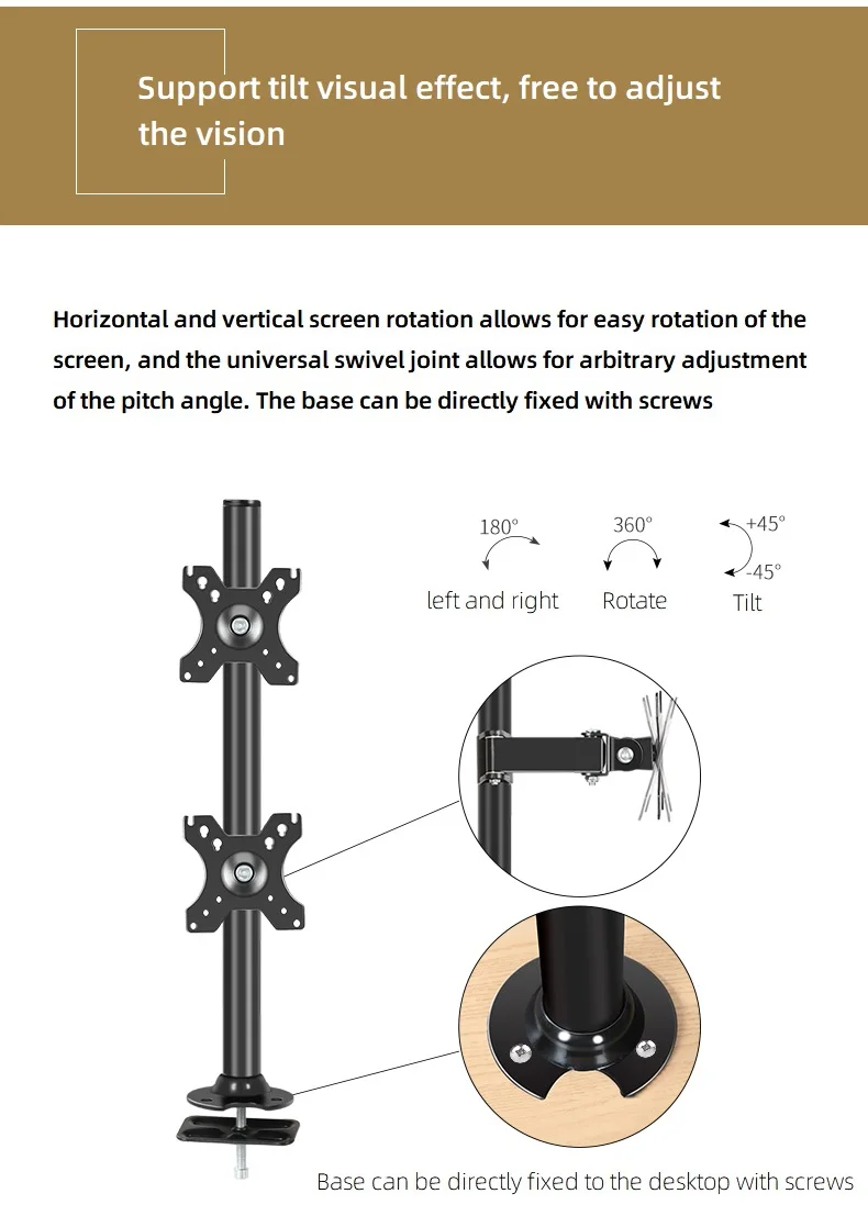 Comprar HILLPORT-Soporte de escritorio para Monitor de doble brazo, Base Vesa XCU58 para pantallas de oficina de 13 a 32 pulgadas, LCD, LED, Soporte de inclinación para Pc