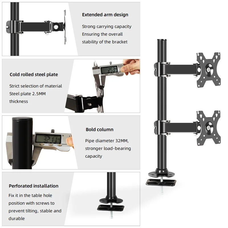 Comprar HILLPORT-Soporte de escritorio para Monitor de doble brazo, Base Vesa XCU58 para pantallas de oficina de 13 a 32 pulgadas, LCD, LED, Soporte de inclinación para Pc