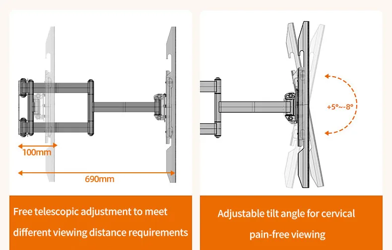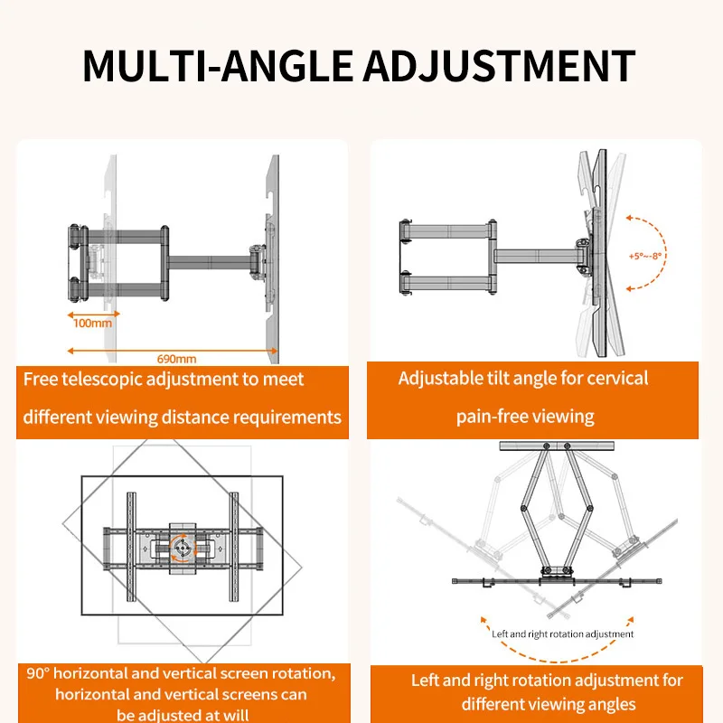 Comprar HILLPORT-soporte de pared giratorio Vertical y Horizontal para TV, brazo completo de pantalla LCD LED de 55-90 pulgadas, soporte de teléfono fundido a TV DY993