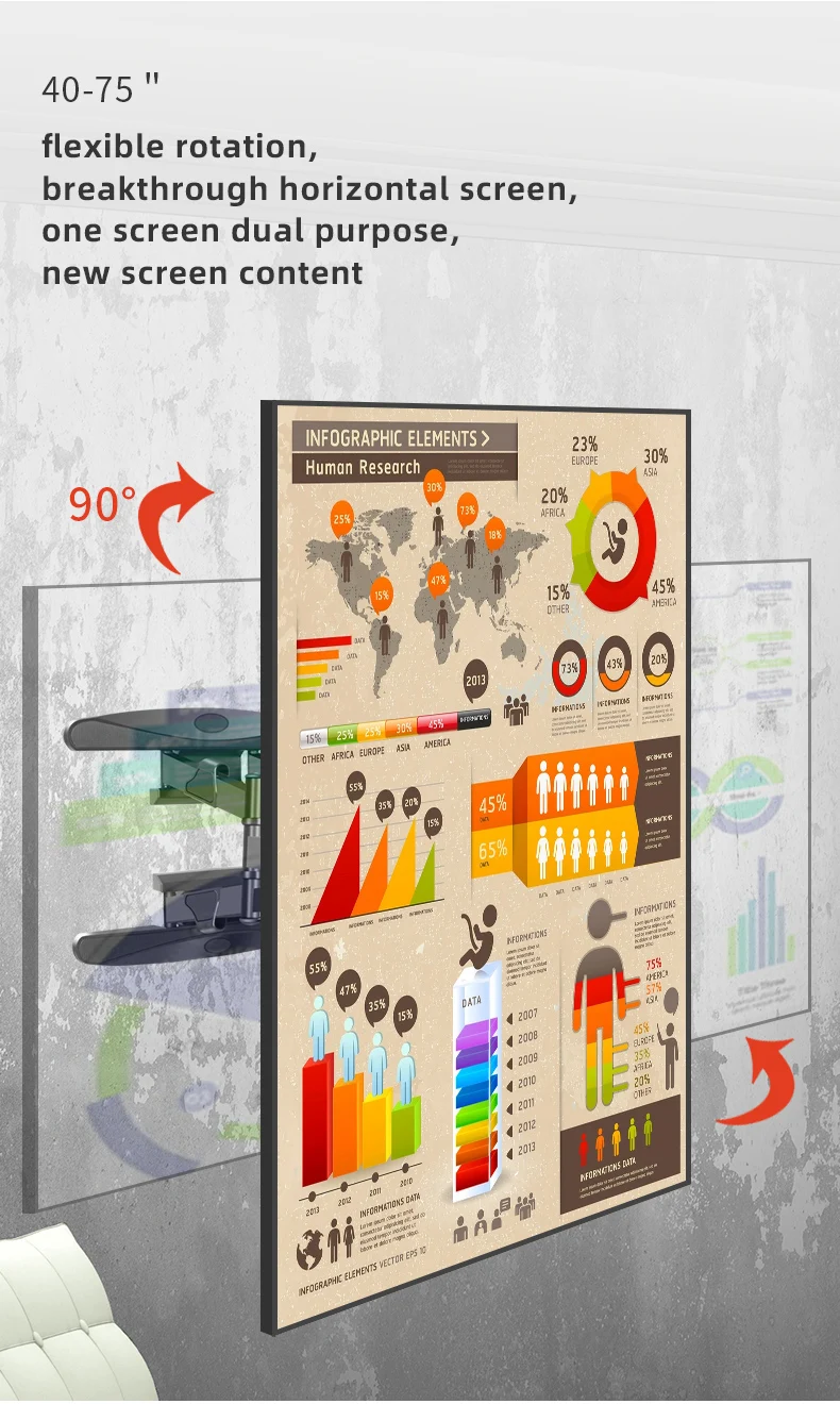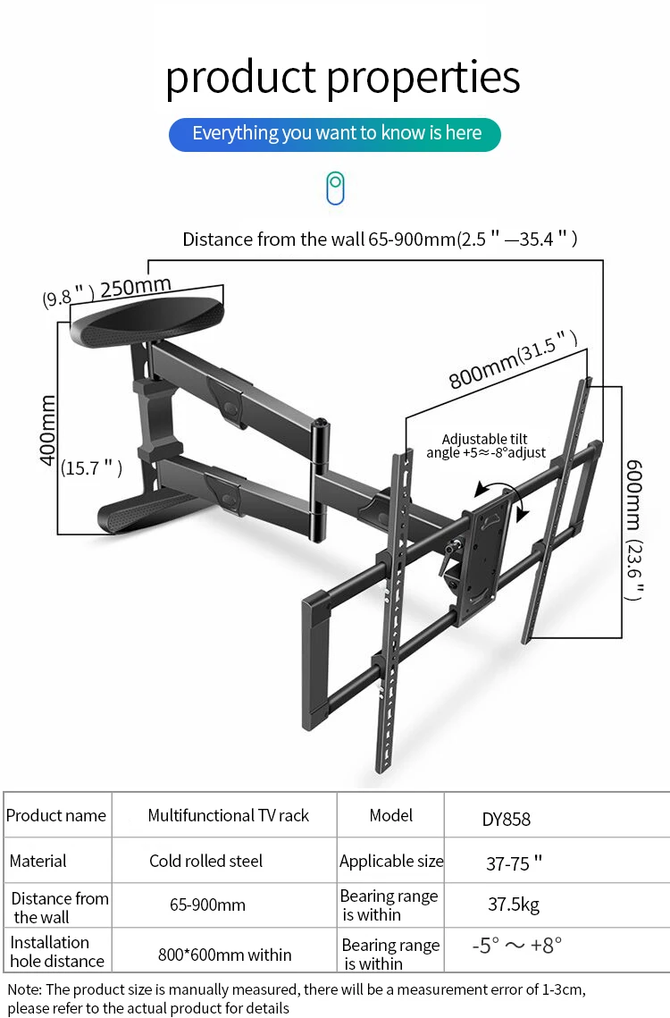 Comprar HILLPORT TV montaje en pared superficie plana Universal LCD Plasma estiramiento giratorio plegable brazo de extensión 37-75 ′′ soporte monitor DY639