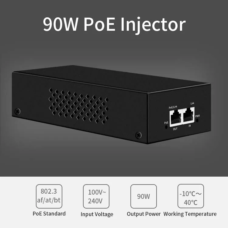 Comprar Hisource 15W 30W 60W 90W Gigabit POE IEEE802.3AF/AT/BT Adaptador PoE para cámara IP Wierless AP