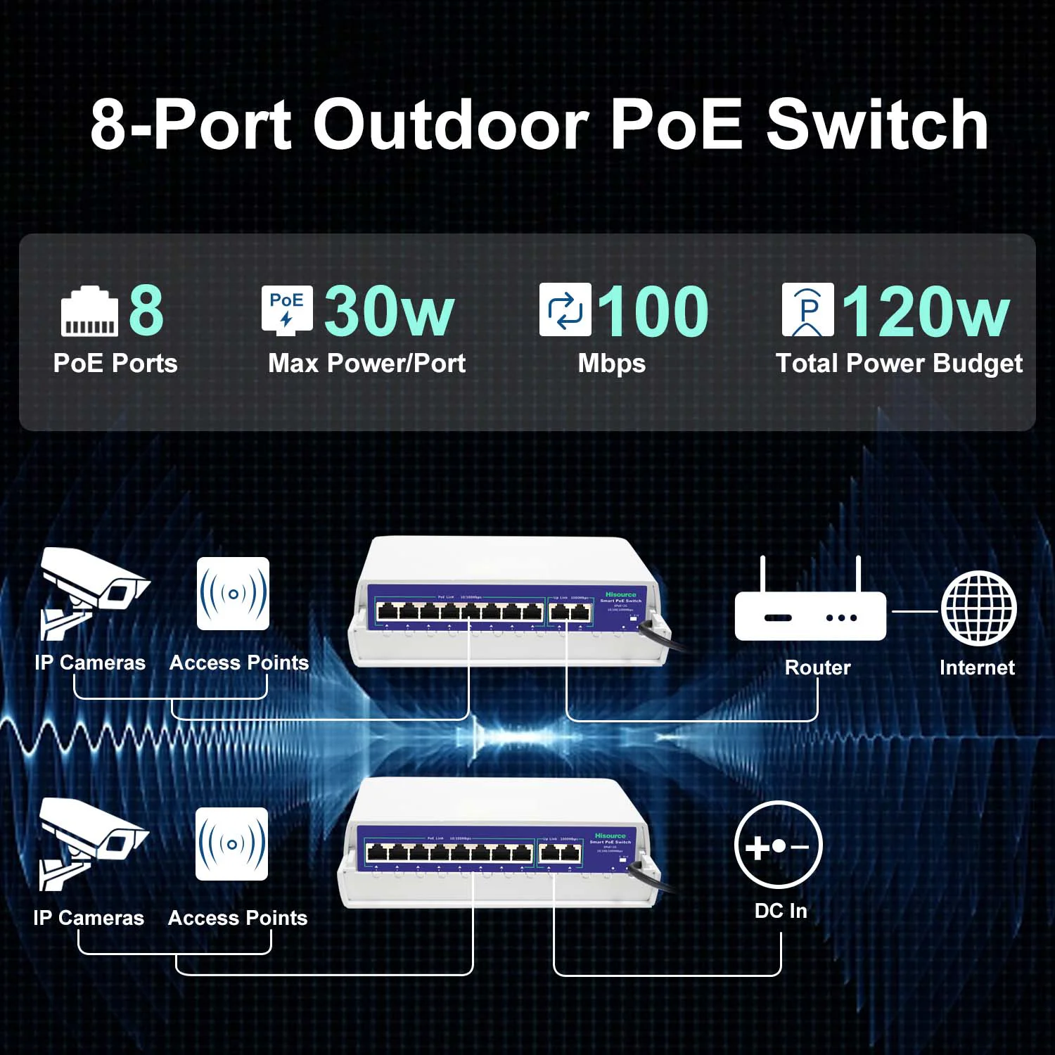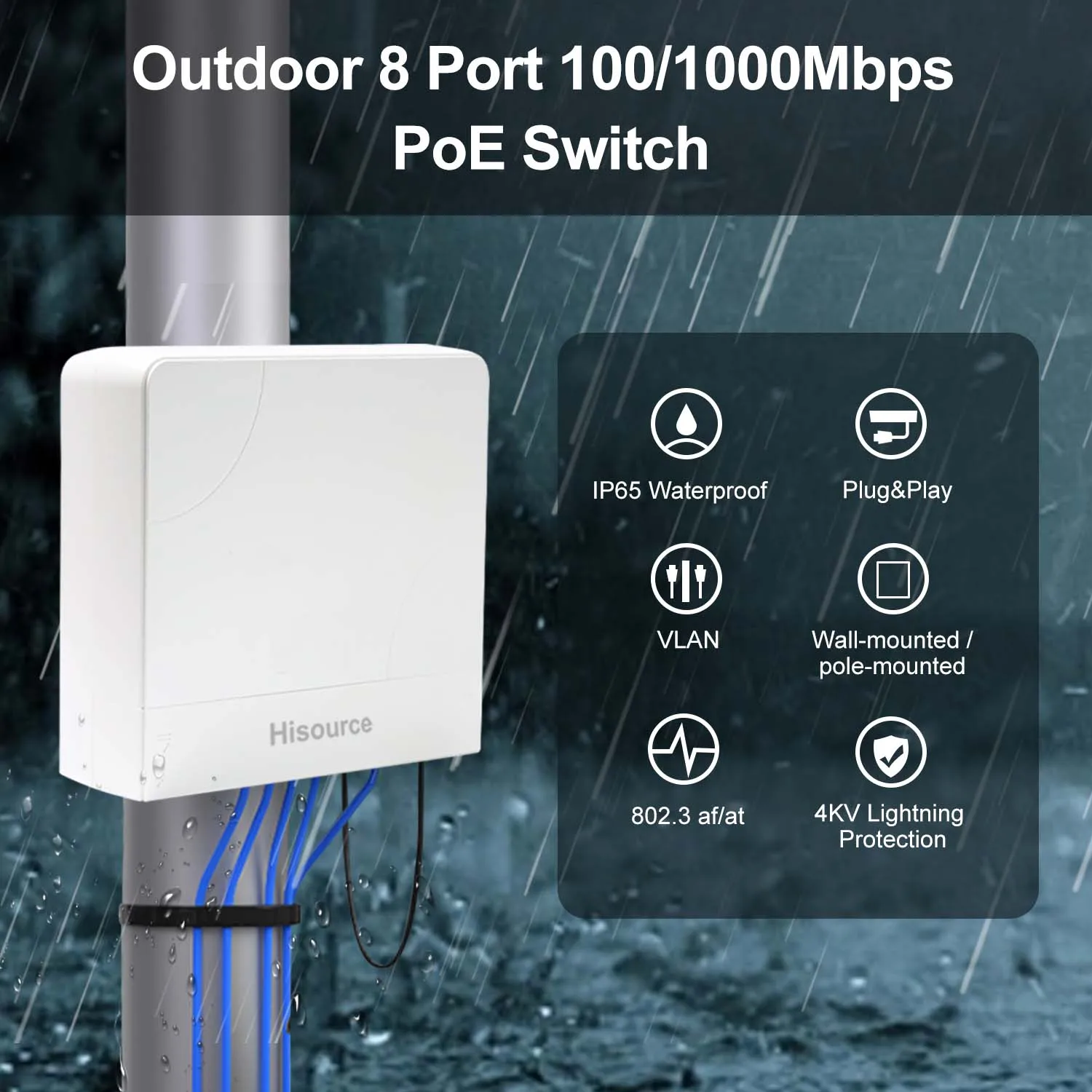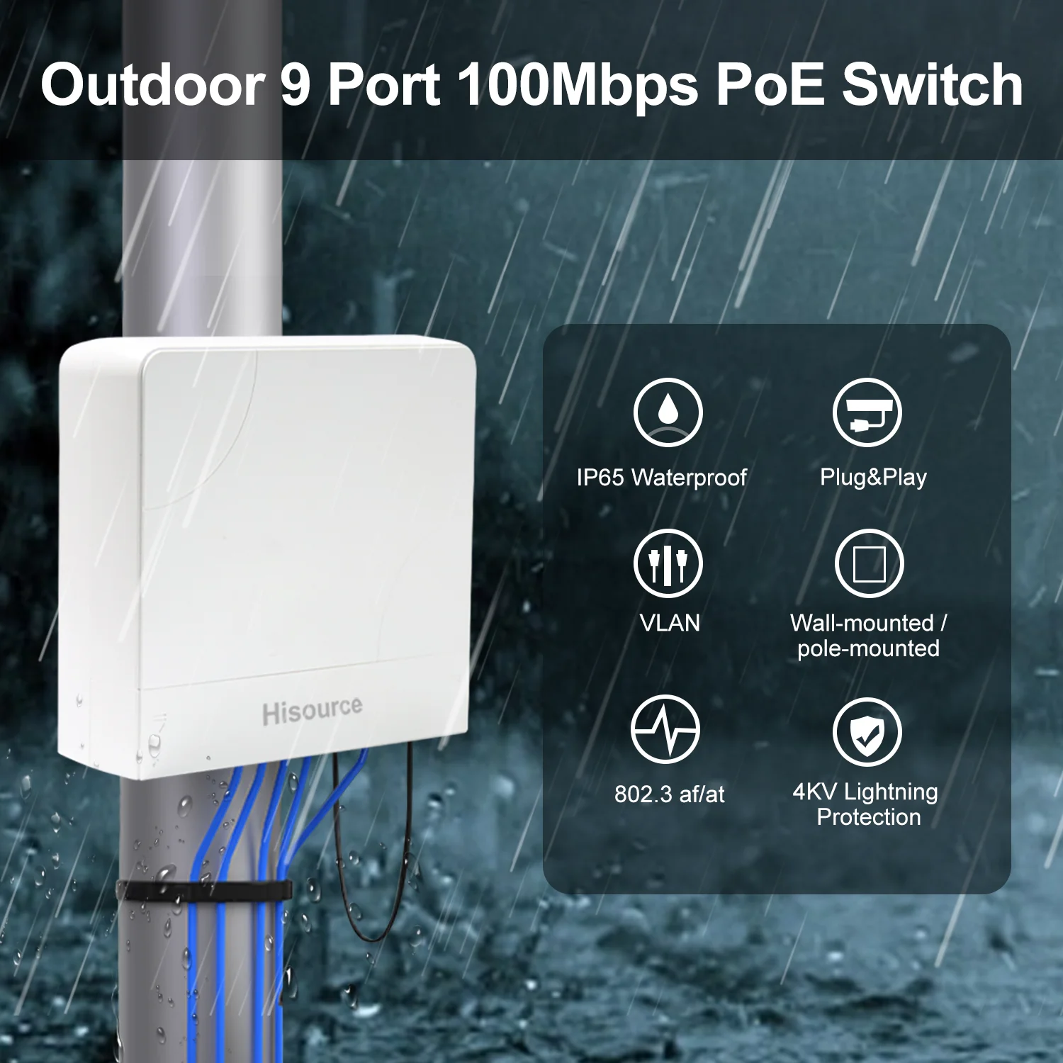 Comprar Hisource-conmutador POE de 6, 8 y 9 puertos para exteriores, resistente al agua, activo, 48V, compatible con IEEE 802.3af/at, interruptor de red para cámara IP/AP inalámbrico