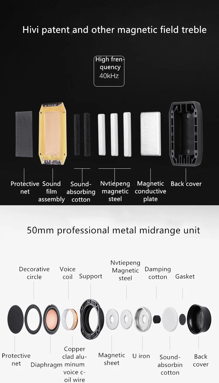 Los conductores de configuración | Controlador de rango medio de graves de 6,5" 2 "de gama media conductor Isodynamic cinta tweeter |