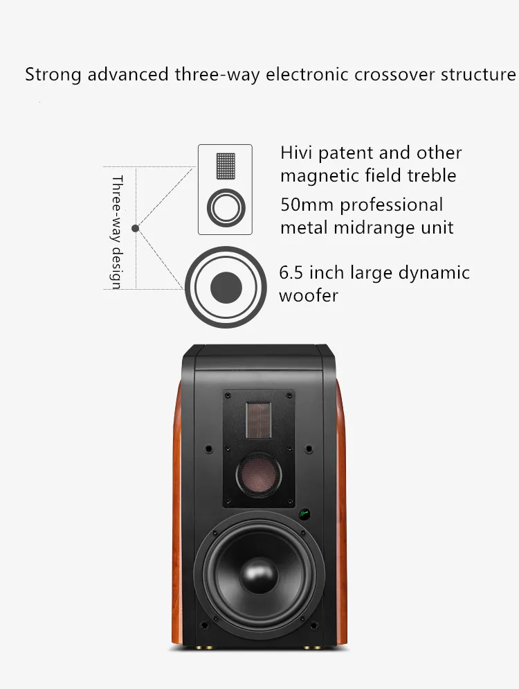HIVI M300MKII Hi-Fi 2,0 altavoz insignia de tres vías de estantería 6,5 & quot Woofer 2 & quot Unidad de rango medio Bluetooth ordenador Tv Audio