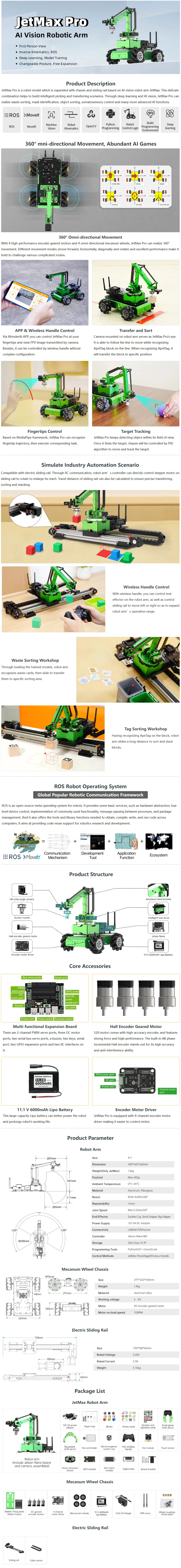 Comprar Hiwonder-Brazo de Robot JetMax Pro JETSON NANO con chasis de rueda Mecanum, riel deslizante eléctrico, soporte ROS Python