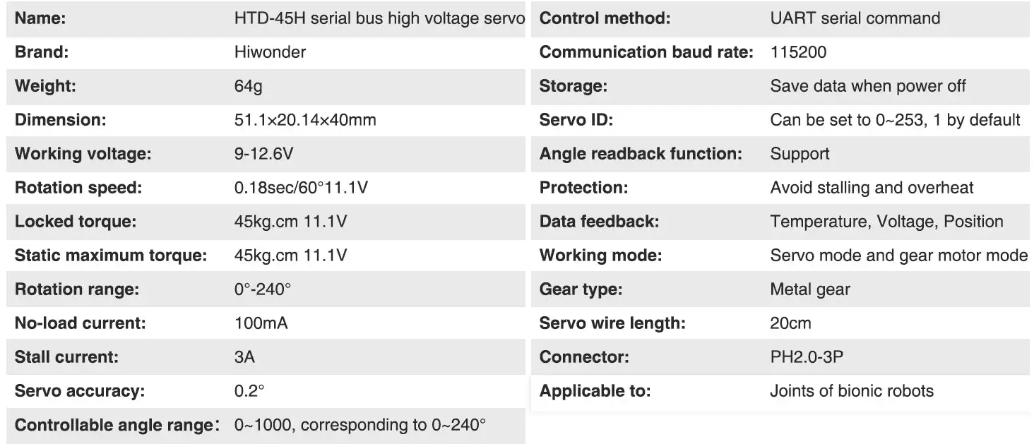 Admite retroalimentación de posición/temperatura/voltaje para proteger el servo contra quemaduras