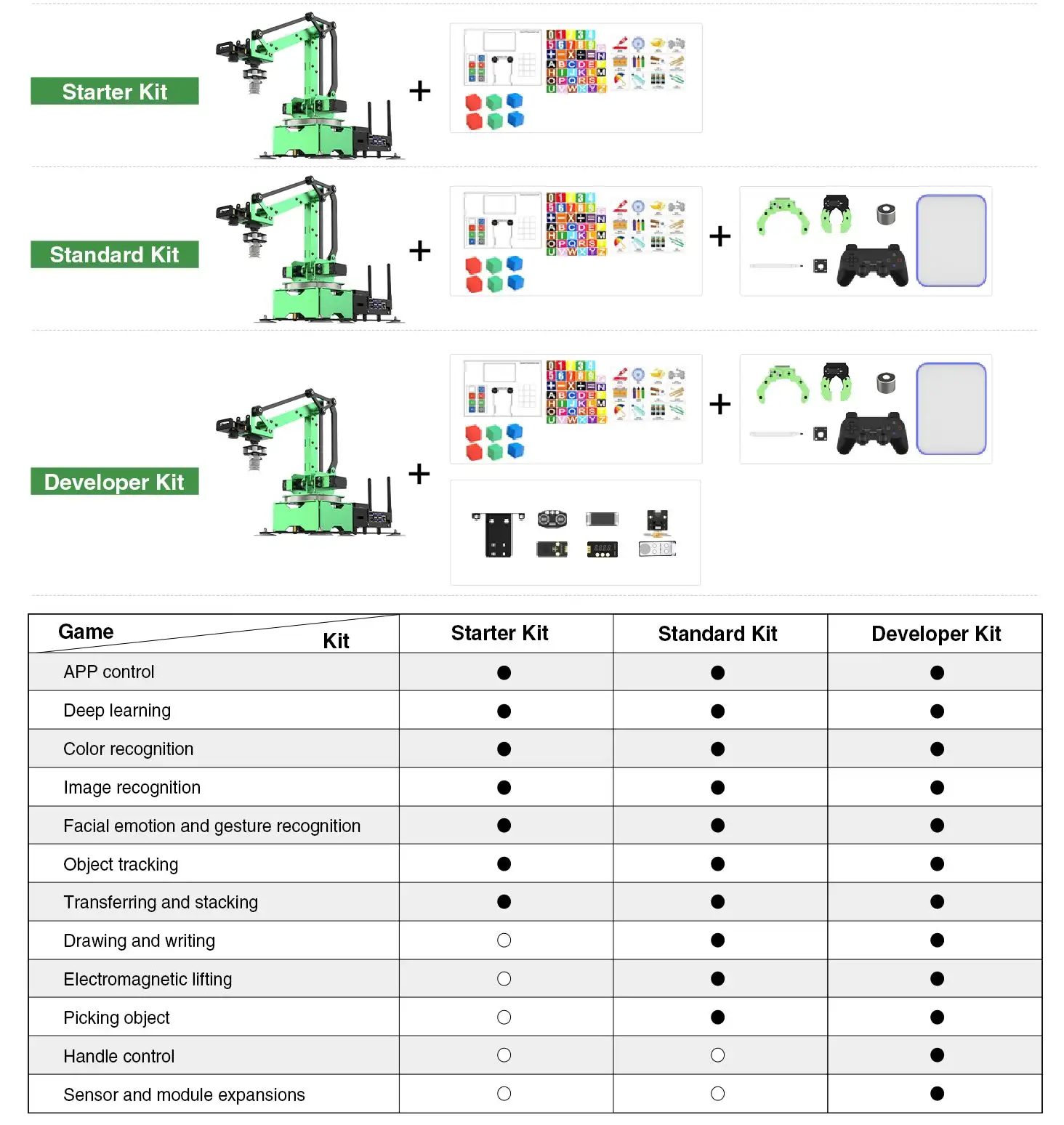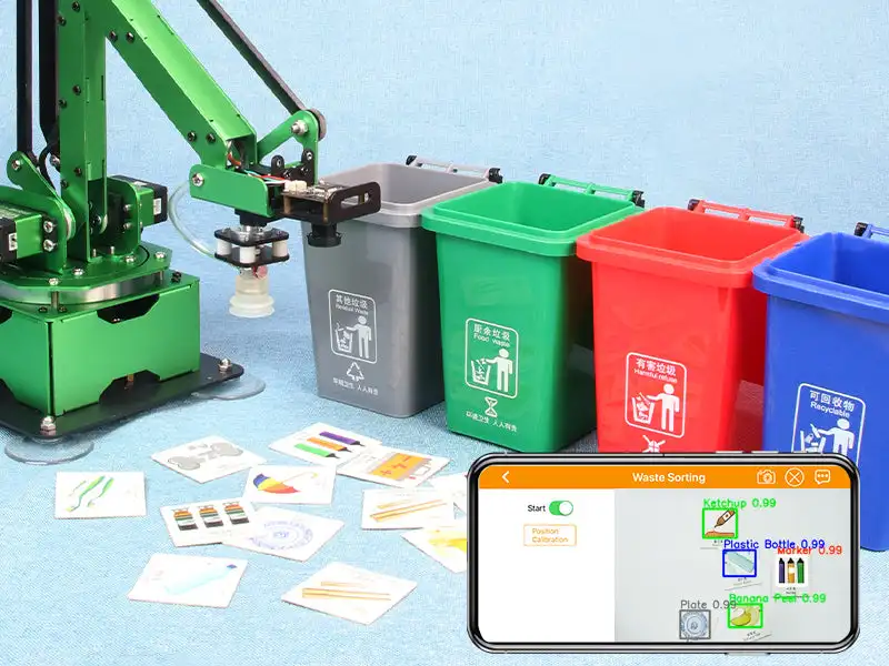 El kit incluye tarjetas de desecho, tarjetas del alfabeto y tarjetas numéricas.JetMax puede reconocer rápidamente diferentes tipos de tarjetas para implementar proyectos complejos de IA, como clasificación de residuos, secuenciación automática, ortografía de palabras, cálculo numérico, etc.