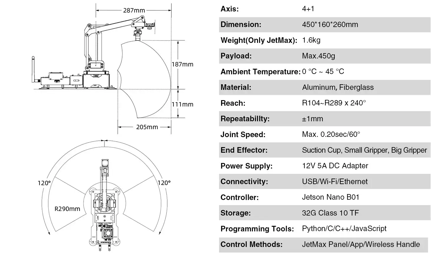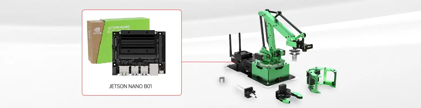 El brazo robótico JetMax de código abierto funciona con Jetson Nano, que admite aprendizaje profundo, visión por computadora, gráficos y más.Jetson Nano tiene el rendimiento y las capacidades que necesita para ejecutar cargas de trabajo modernas de IA, lo que le brinda una manera rápida y fácil de agregar IA avanzada a su brazo robótico JetMax.