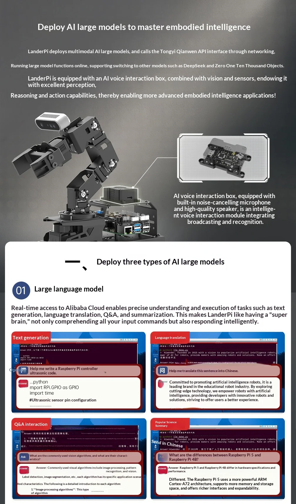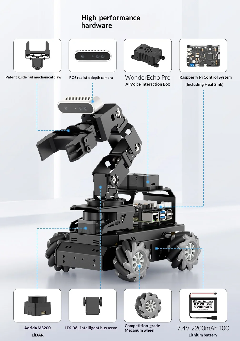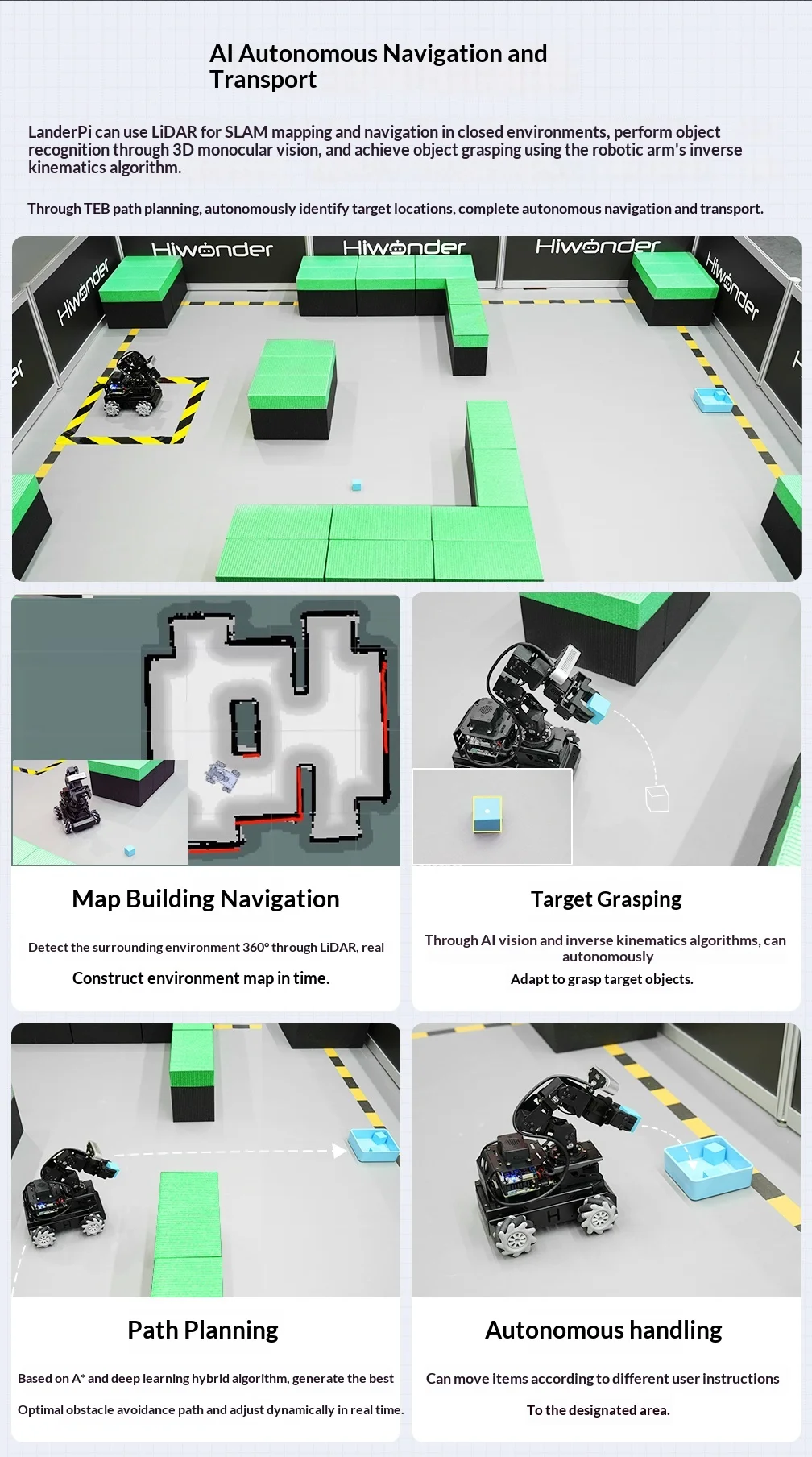 Hiwonder LanderPi: Coche robot Raspberry Pi AI con brazo de visión