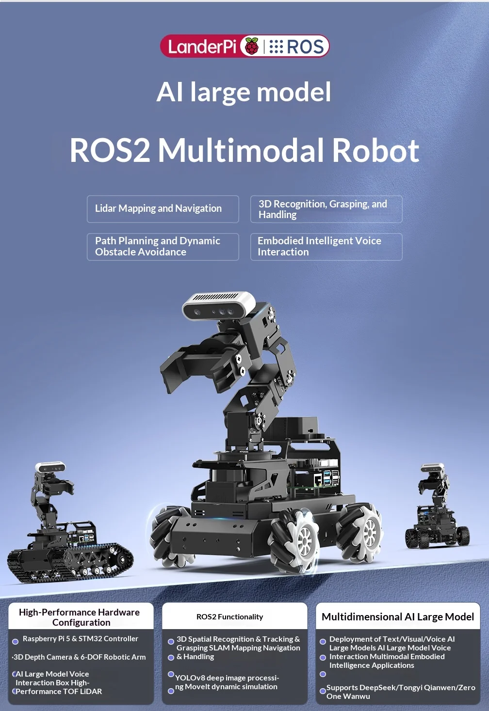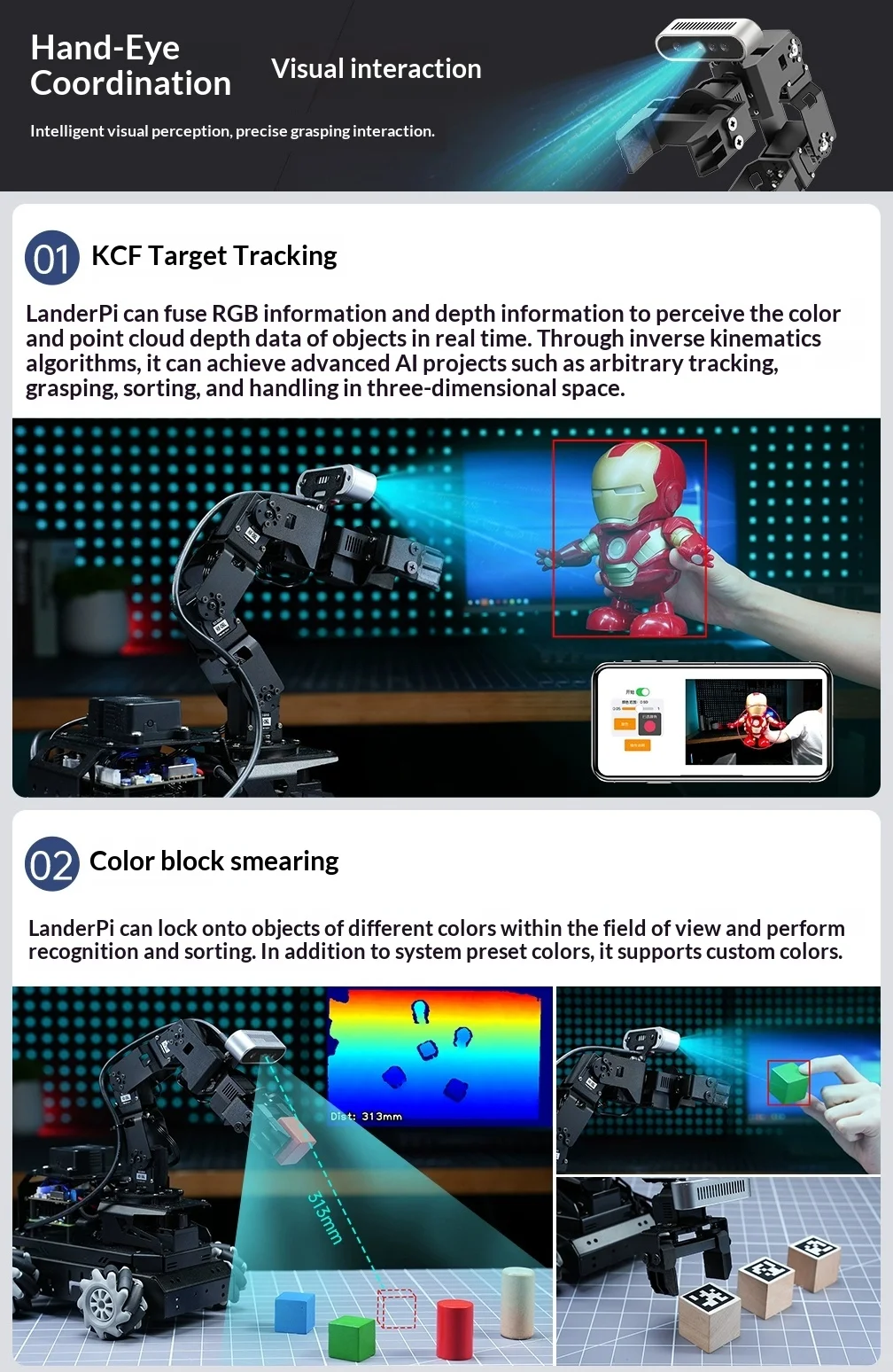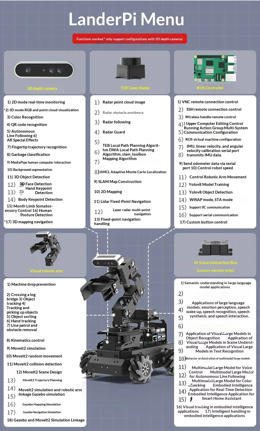Hiwonder LanderPi: Coche robot Raspberry Pi AI con brazo de visión