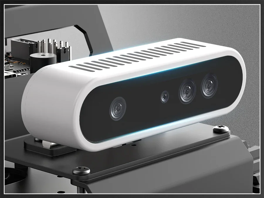 The 3D depth camera powers the AI visuals and handles advanced tasks like depth image data processing and 3D visual mapping/navigation.
