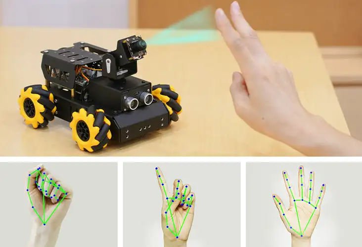 TurboPi coopera con OpenCV para contar los dedos.Luego interactúe con usted según el número de dedos, como la bocina, gire y cambie el color de la luz.