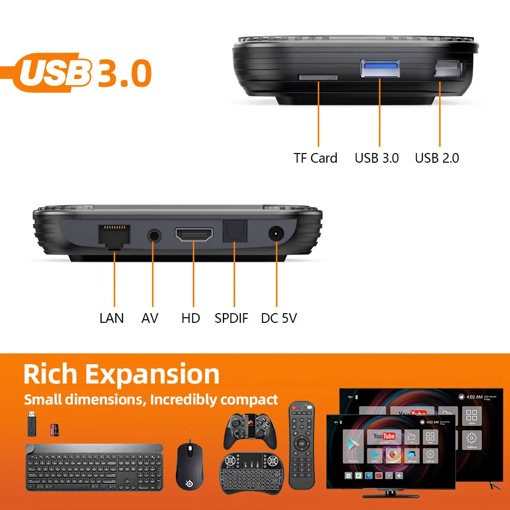 - CPU: Amlogic S905X4 Quad Core ARM Cortex A55;
