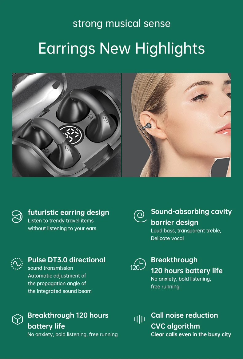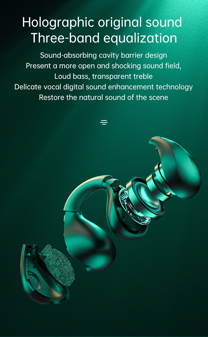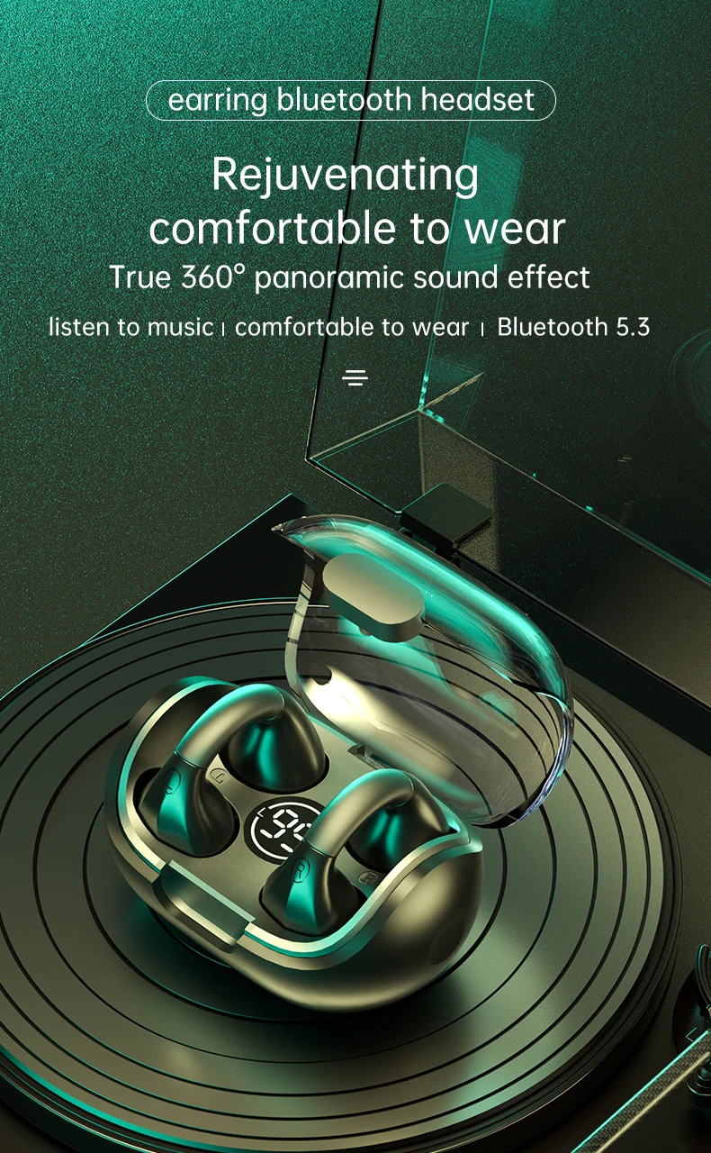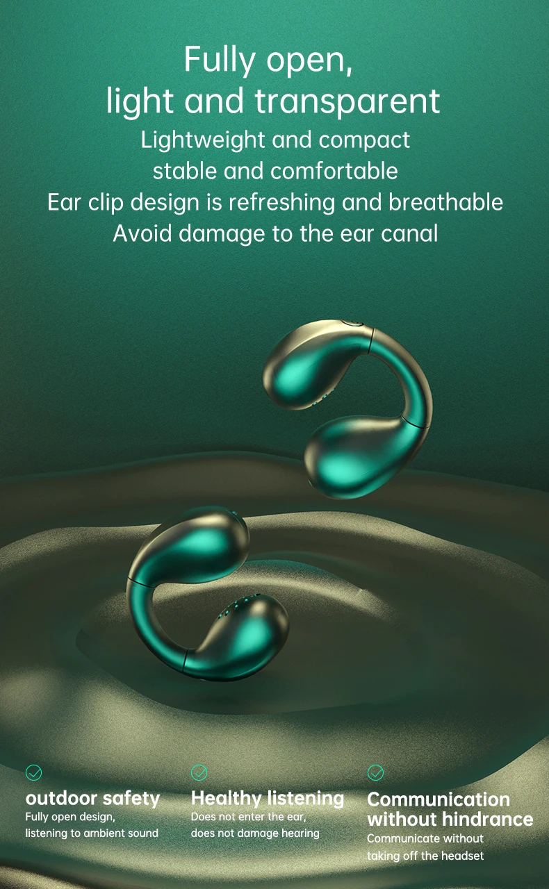 【Buds-Free & Injury Reduction】Comfortable suspension wear headphones, just clip on your ears, no need to insert into your ear canal at all, reduce your hearing damage; no feeling, just like not wearing