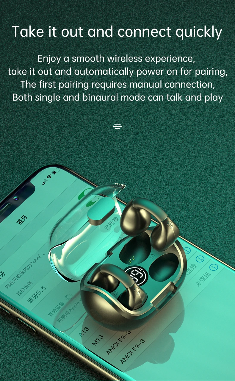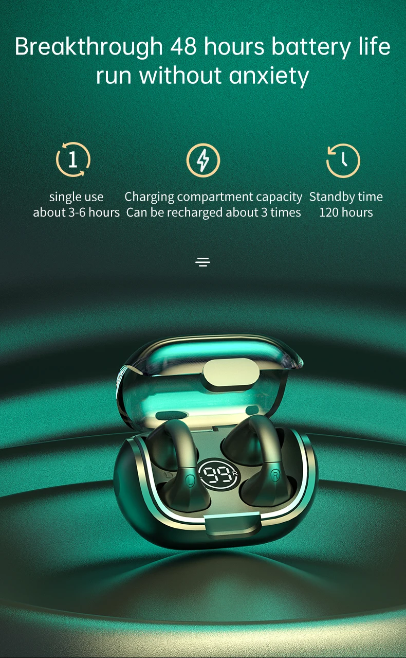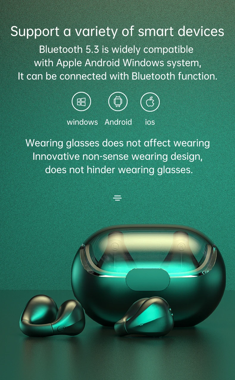 【Bluetooth 5.2 & Fast And Premium】Bone conduction earbuds are equipped with the latest Bluetooth 5.3 chip to ensure a smooth and immediate connection. The headphones are based on the design concept of Hi-Fi professional headphones, giving you clear sound, powerful volume, and a rich bass experience