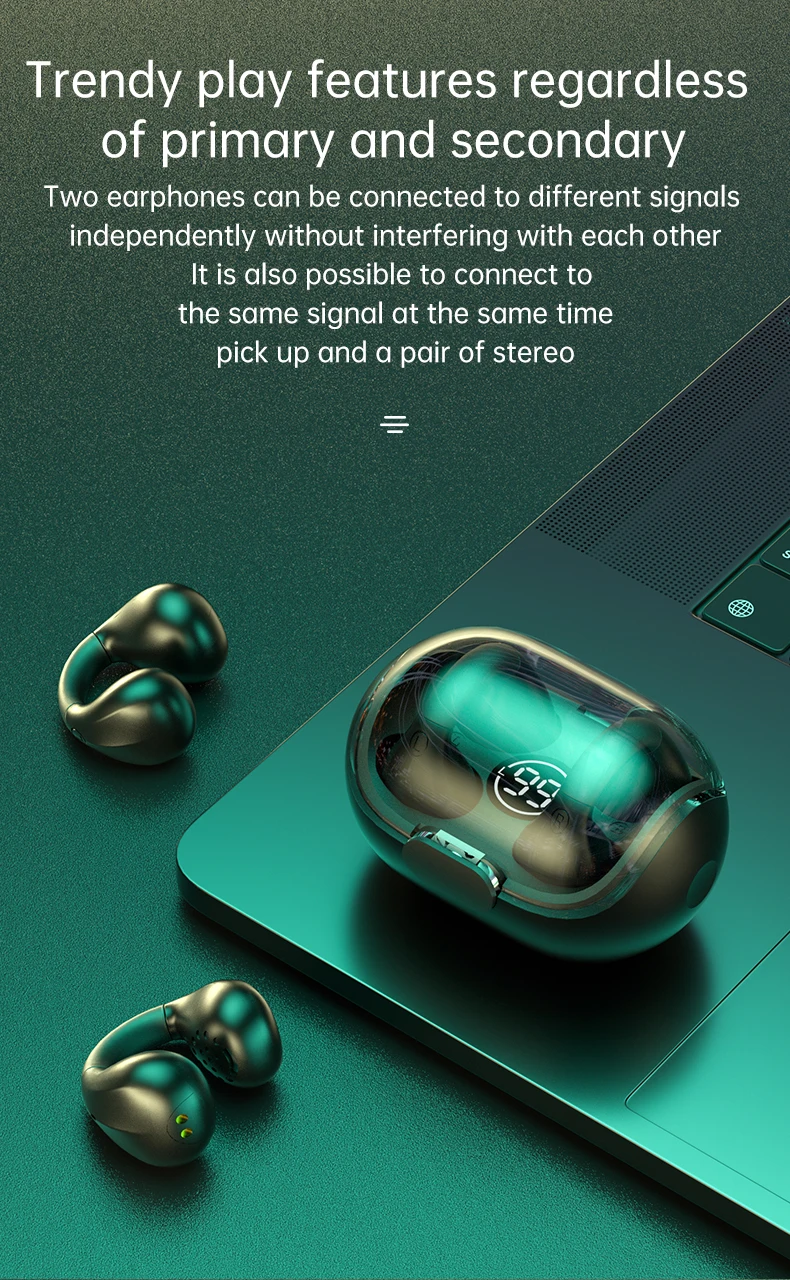 【Fixed Wearing & High Quality Materials】Open buds is a new style of true wireless open ear earbuds with innovative ergonomic design and high quality memory silicone that clips snugly to your ears without pinching. The open ear headphones are perfect for running, exercising and outdoor sports