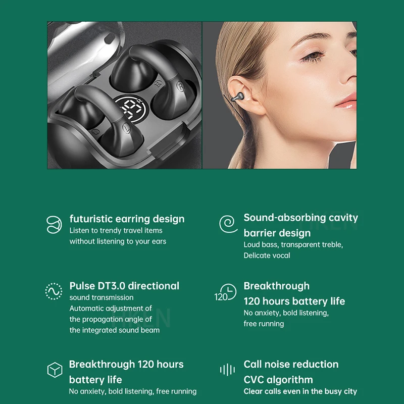 【Buds-Free & Injury Reduction】Comfortable suspension wear headphones, just clip on your ears, no need to insert into your ear canal at all, reduce your hearing damage; no feeling, just like not wearing