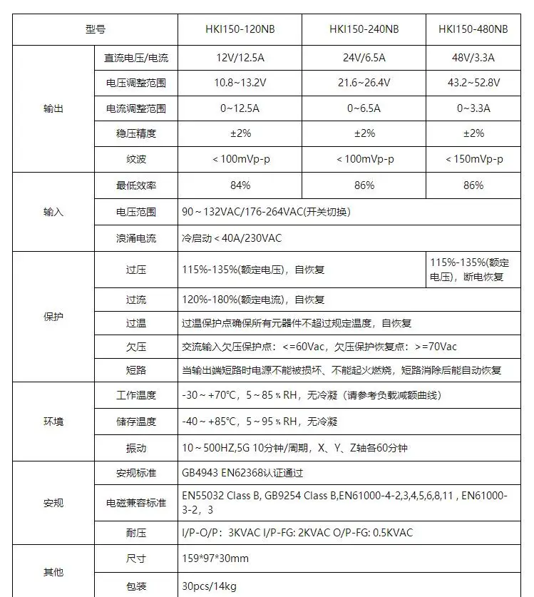 HKI150-120NB for Huntkey Industrial Power Supply 150W single output 12V