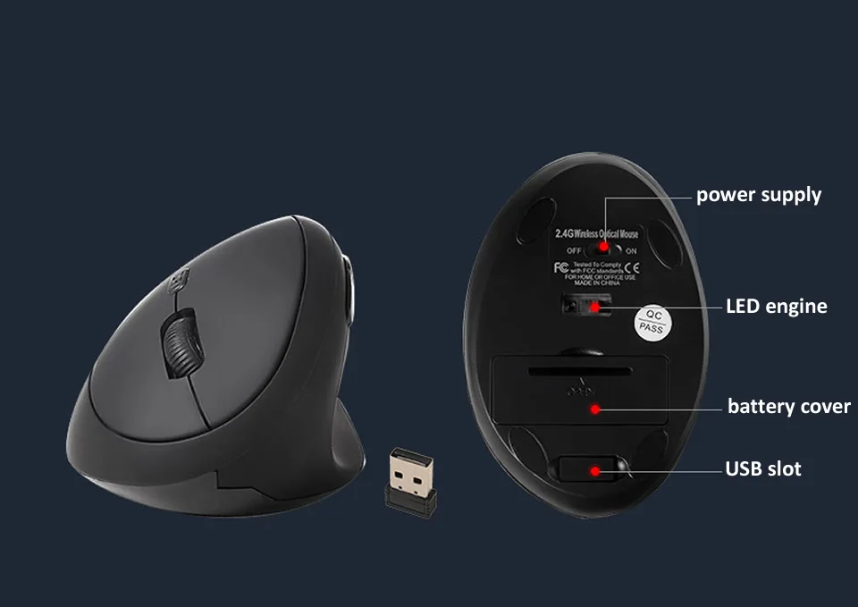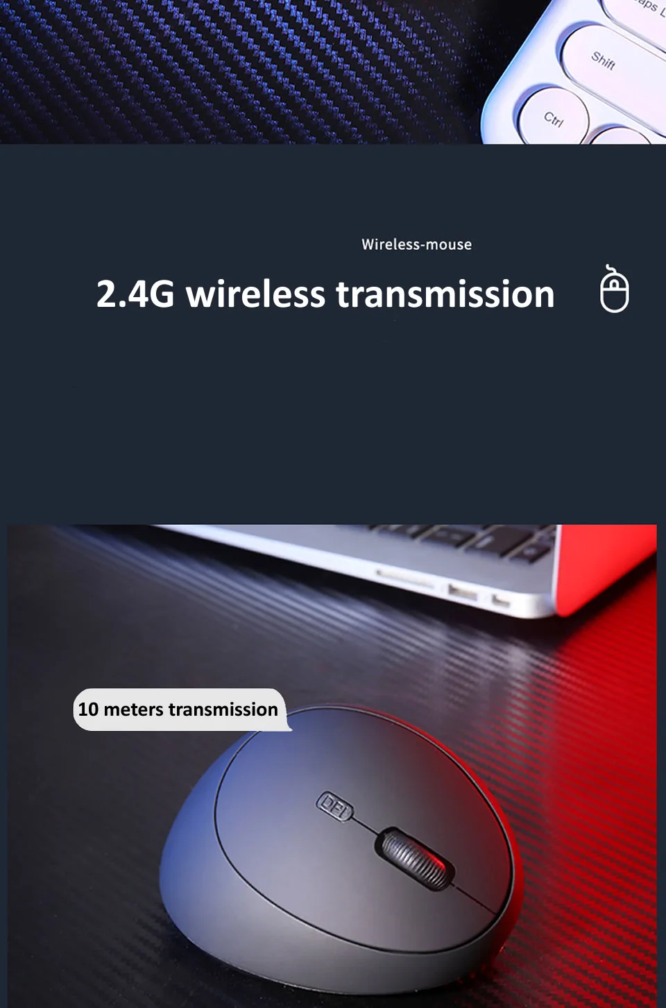 HKXA 2.4G ratón Vertical inalámbrico ratón USB ergonómico 1600DPI Oficina