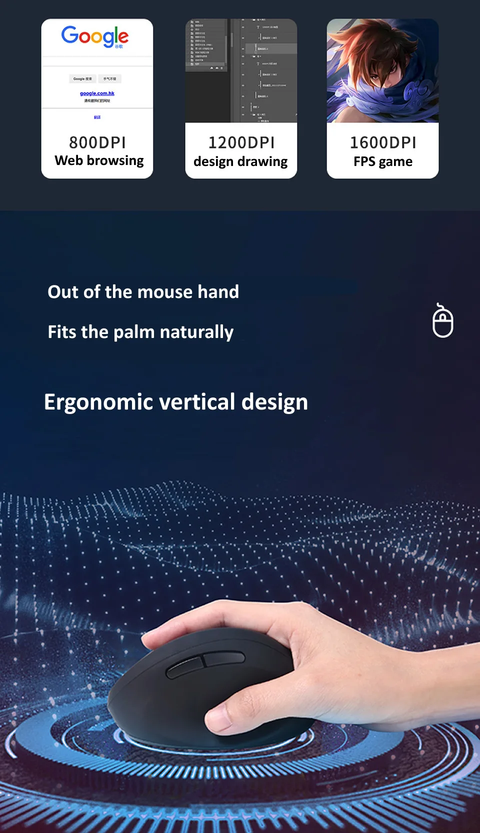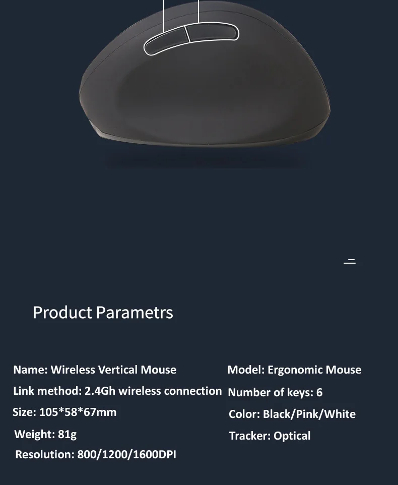 Nombre: Ratón vertical inalámbrico de 2,4G