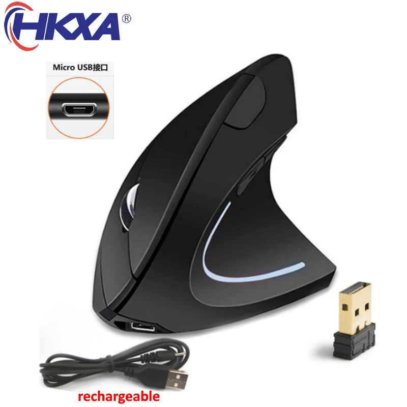 Comprar HKXA-ratón Vertical ergonómico para juegos, inalámbrico, recargable, óptico, 2,4G, para ordenador, PC, portátil, USB