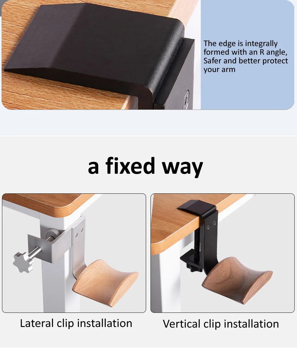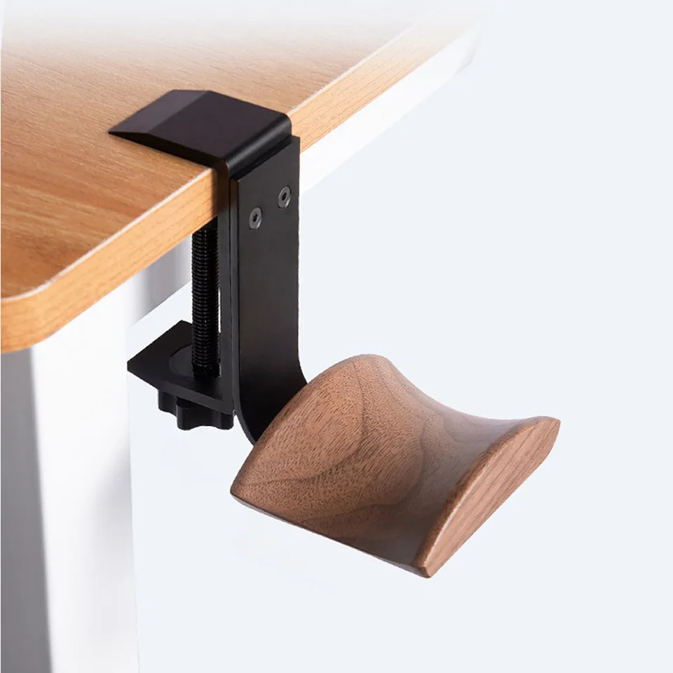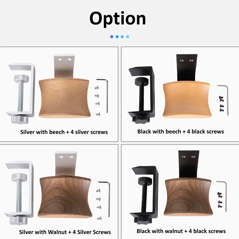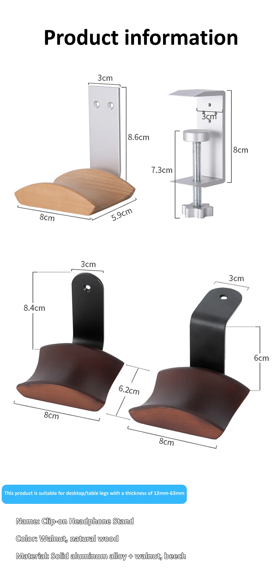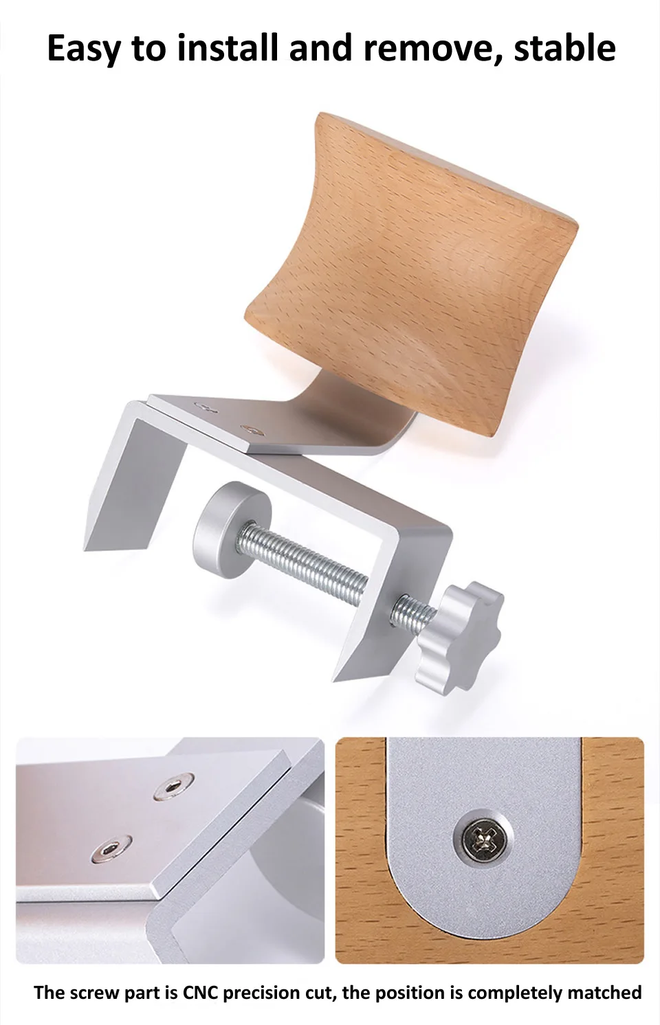 HKXA Soporte de madera para auriculares Clip de bloqueo de escritorio de aleación de aluminio