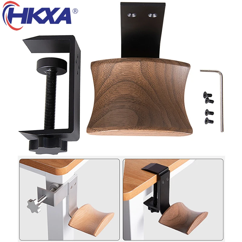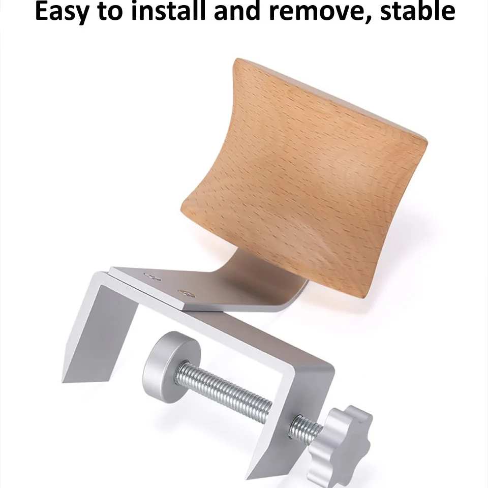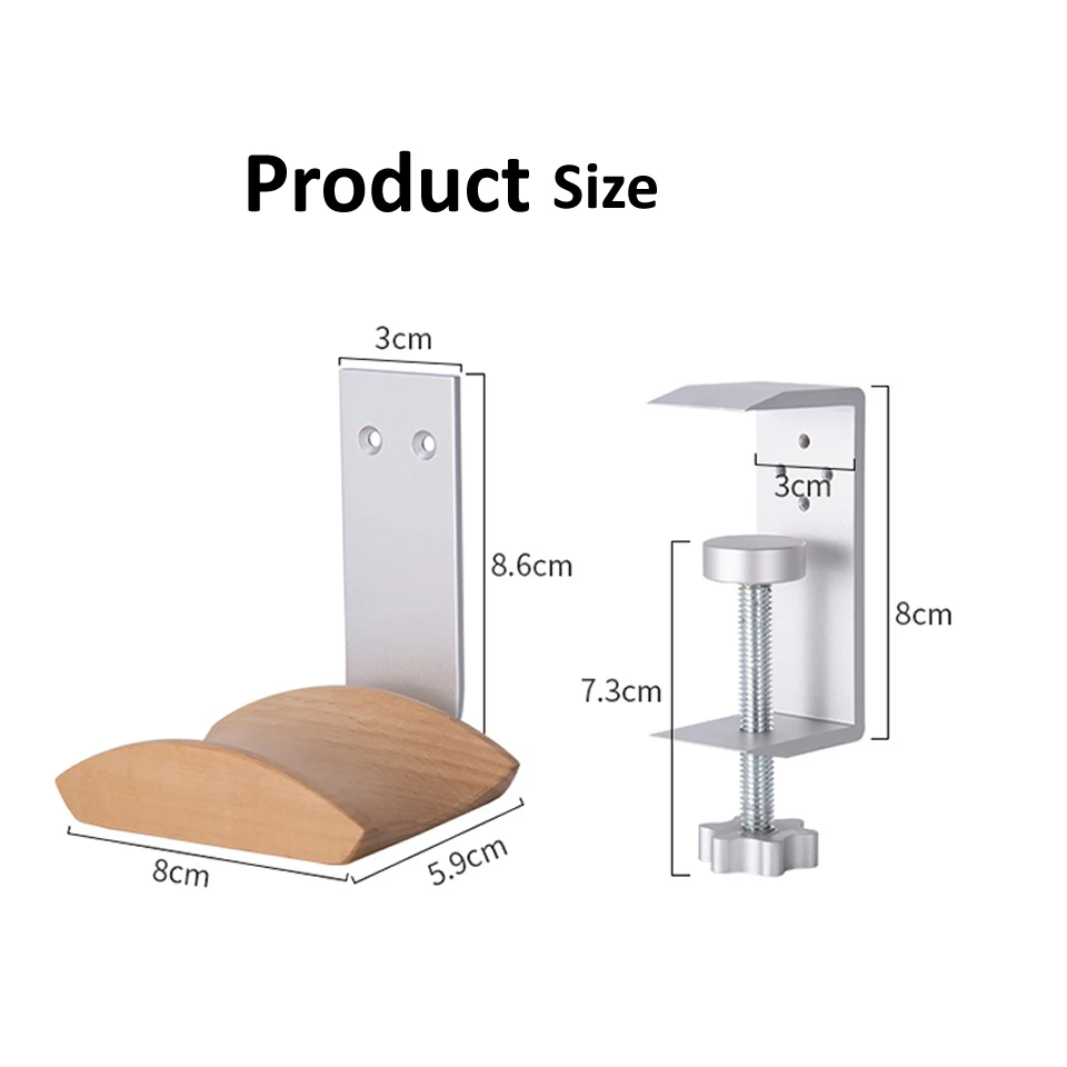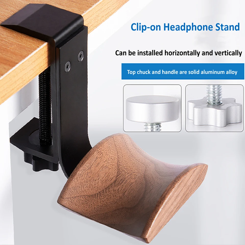 HKXA Soporte de madera para auriculares Clip de bloqueo de escritorio de aleación de aluminio
