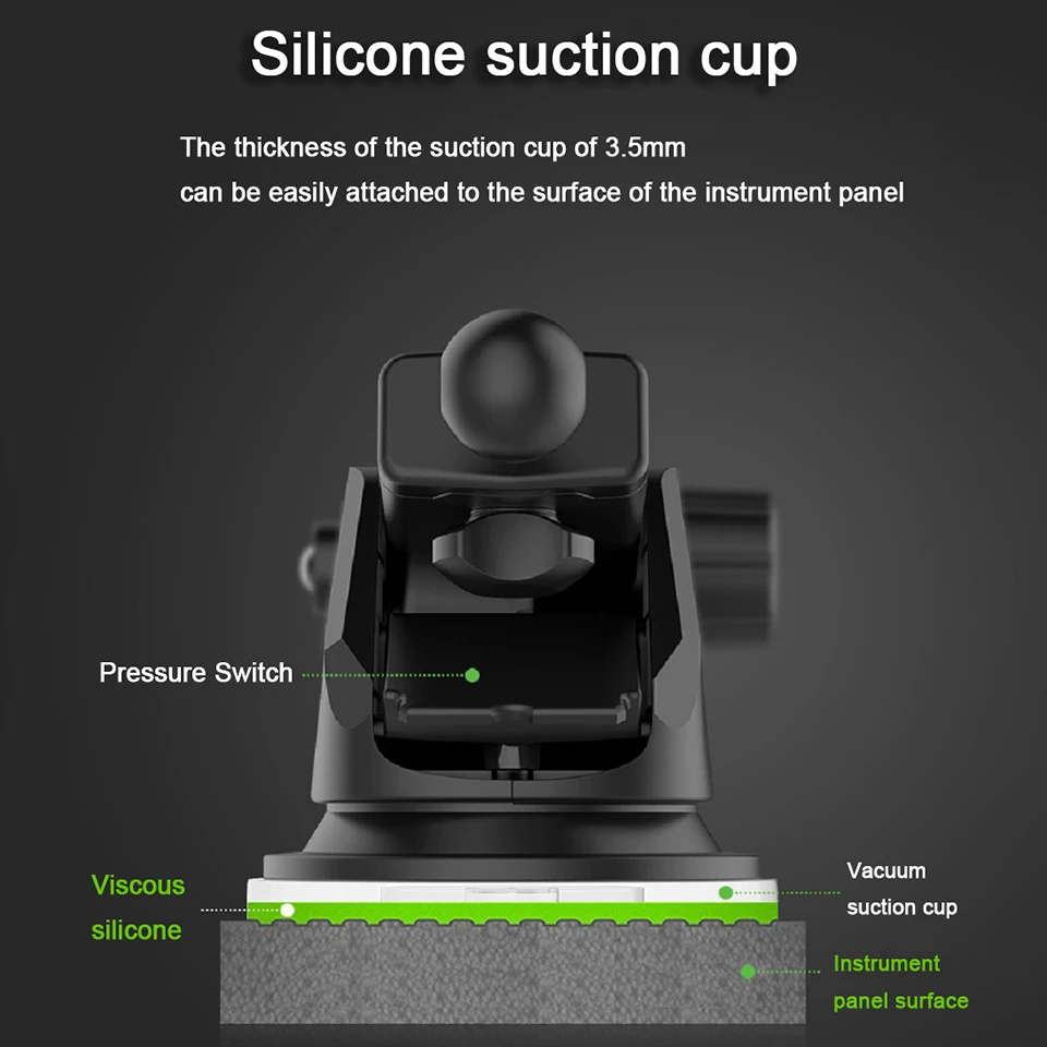 2. Fácil de instalar y liberar en el salpicadero o parabrisas del vehículo.