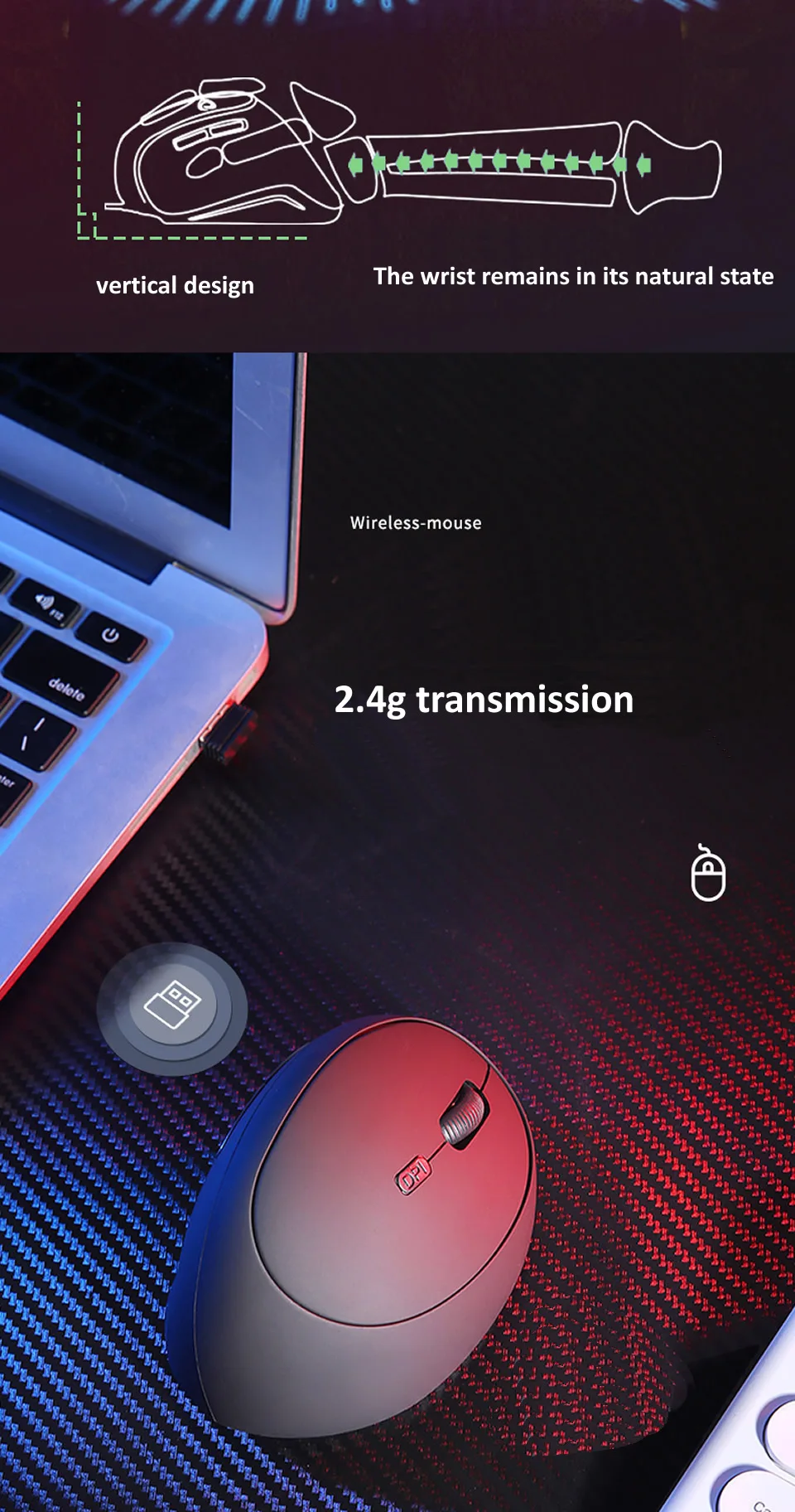 Nombre: Ratón vertical inalámbrico de 2,4G