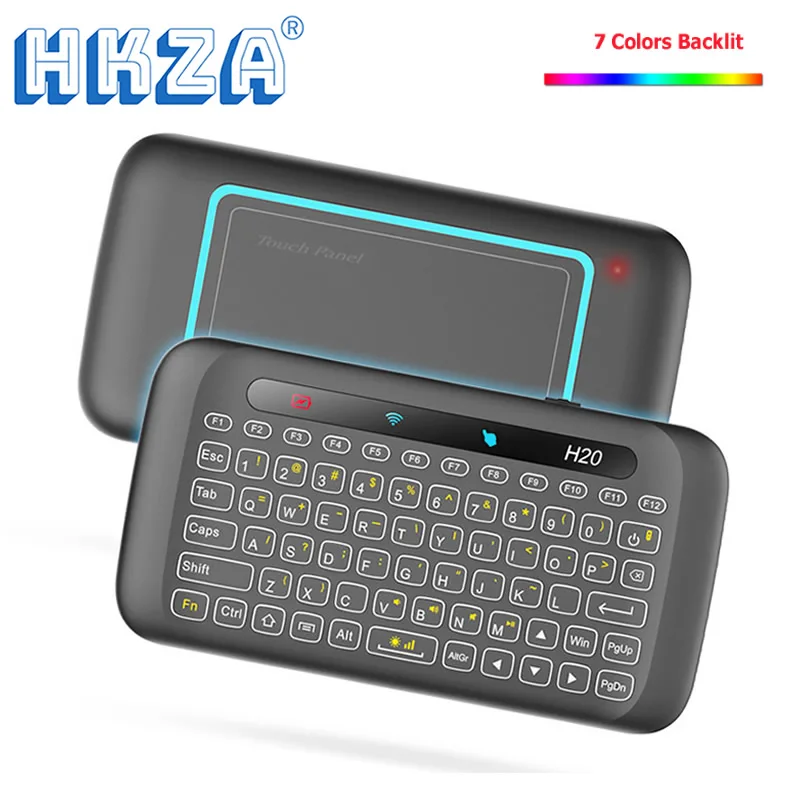 HKZA H20 Mini 2,4 Ghz Teclado inalámbrico Retroiluminación Touchpad Air Mouse IR Inclinación