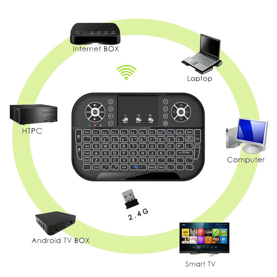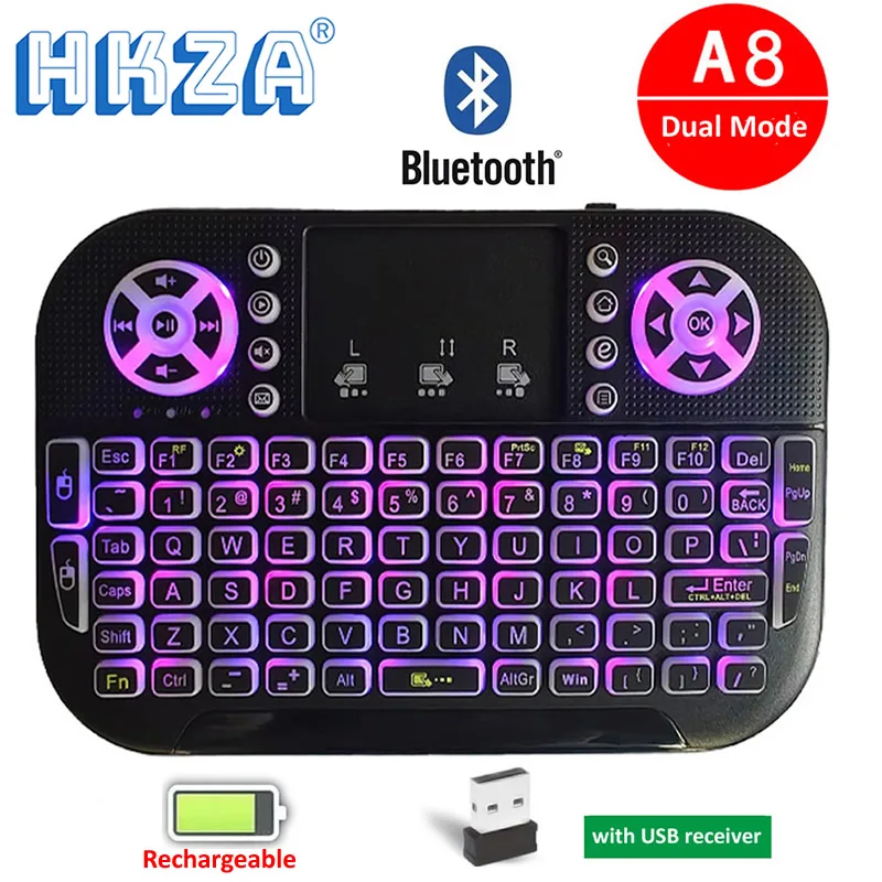 Comprar HKZA-miniteclado Bluetooth A8, 2,4G, modo Dual, diapasón de mano, retroiluminado, Touchpad, Control remoto, para Windows, Android, TV
